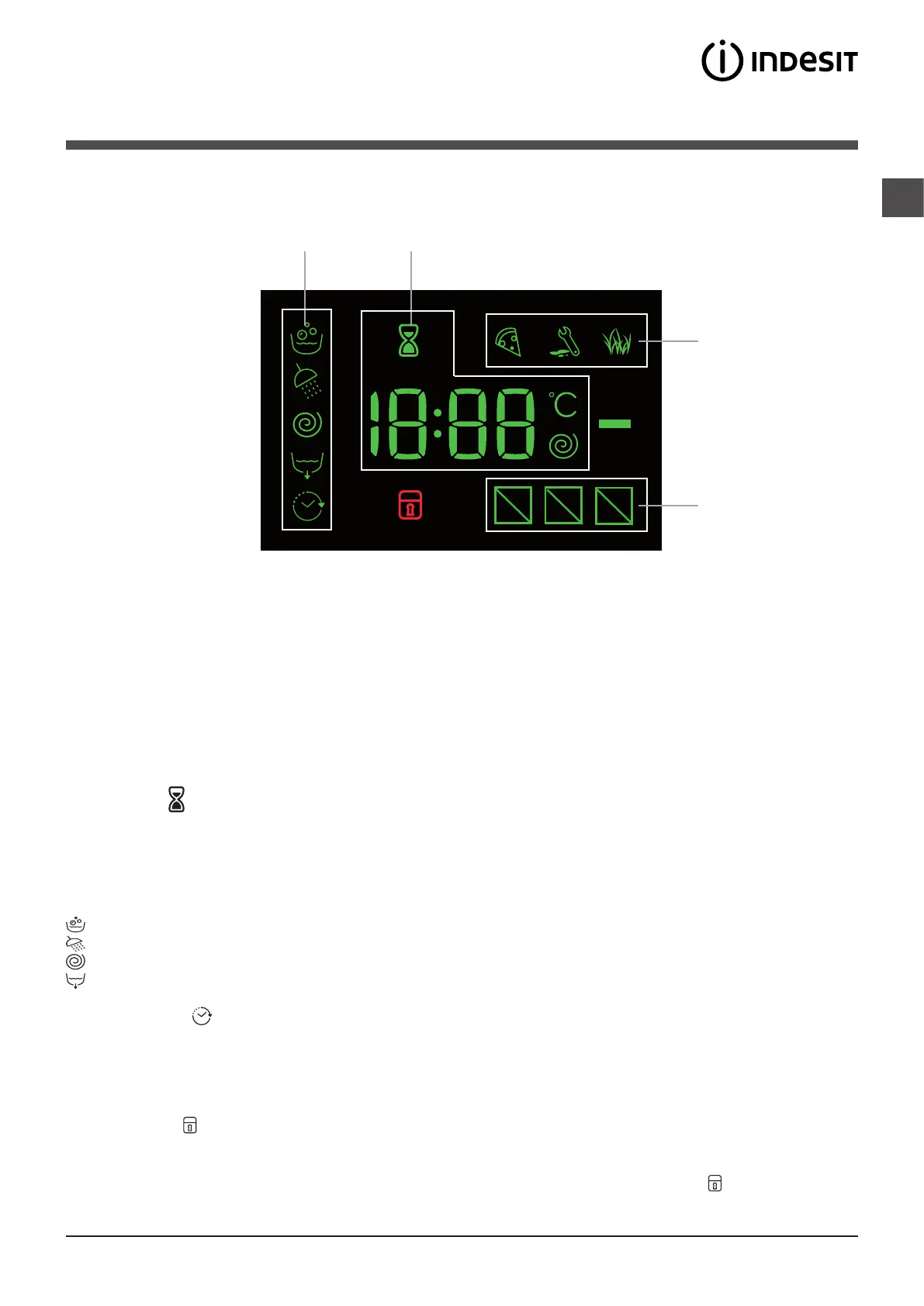The “delay” symbol , when lit, indicates that the set “delayed start” value has appeared on the display.
