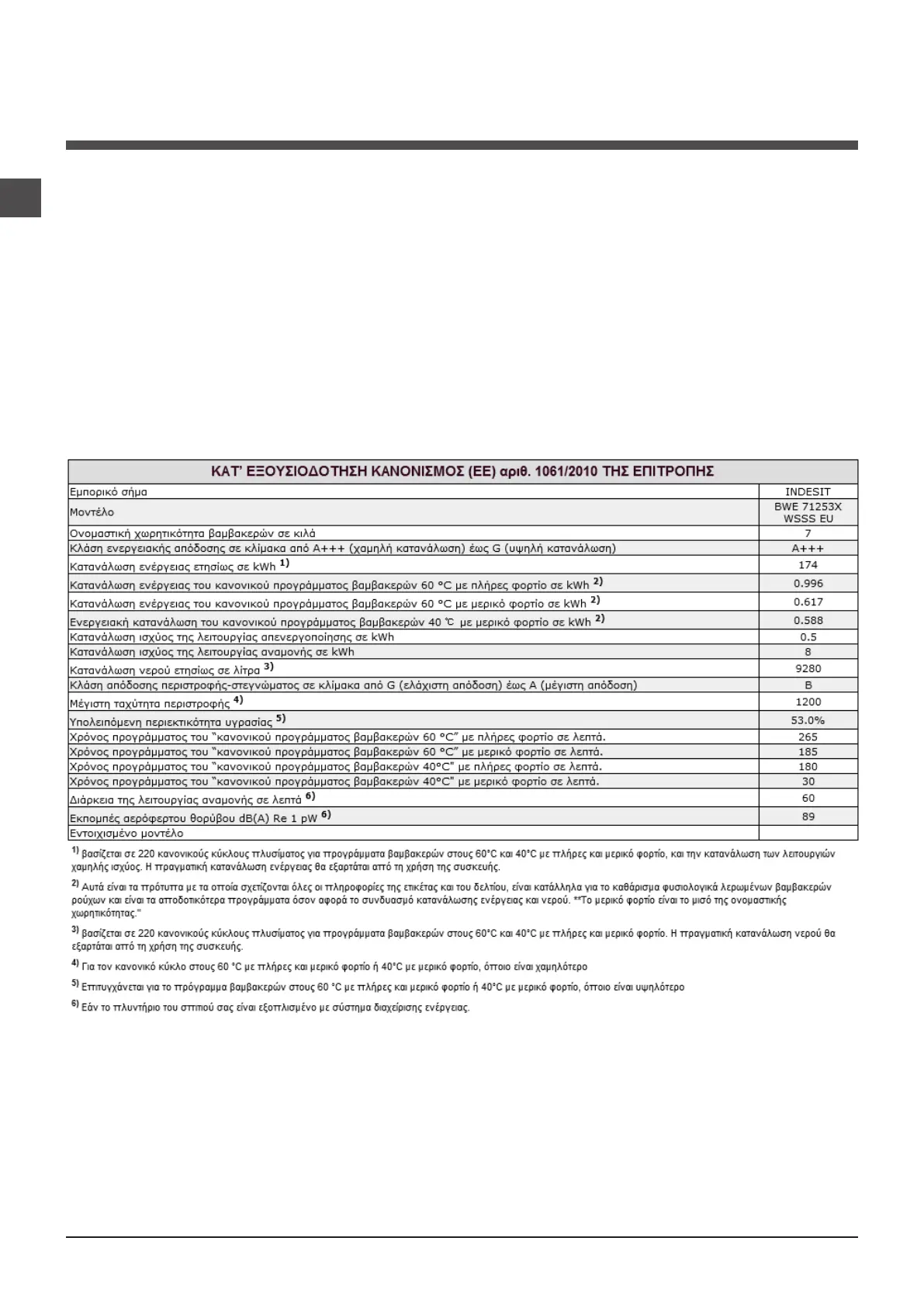 Indesit BWE 71253 - Υποστήριξη
