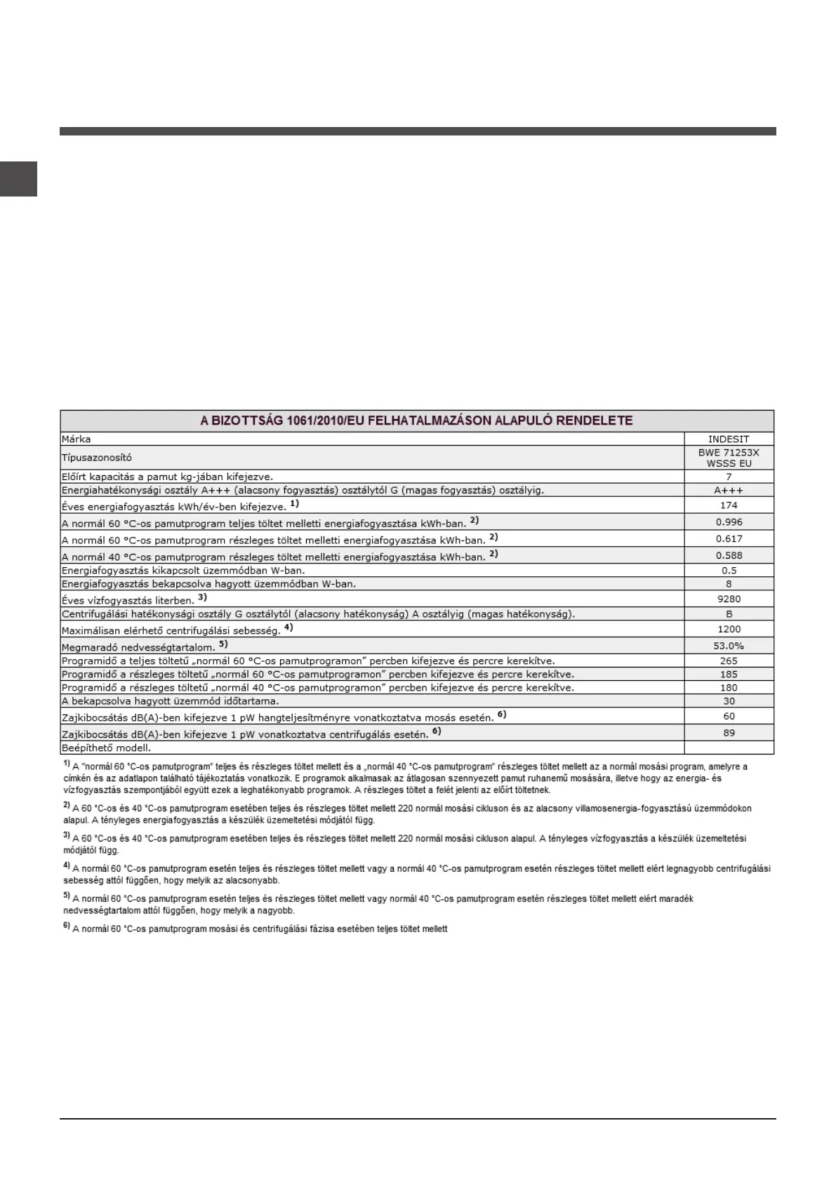 Ezek az adatok a mosógép hátoldalán, illetve az elülső oldalon az ajtó belsején elhelyezett adattáblán találhatók.