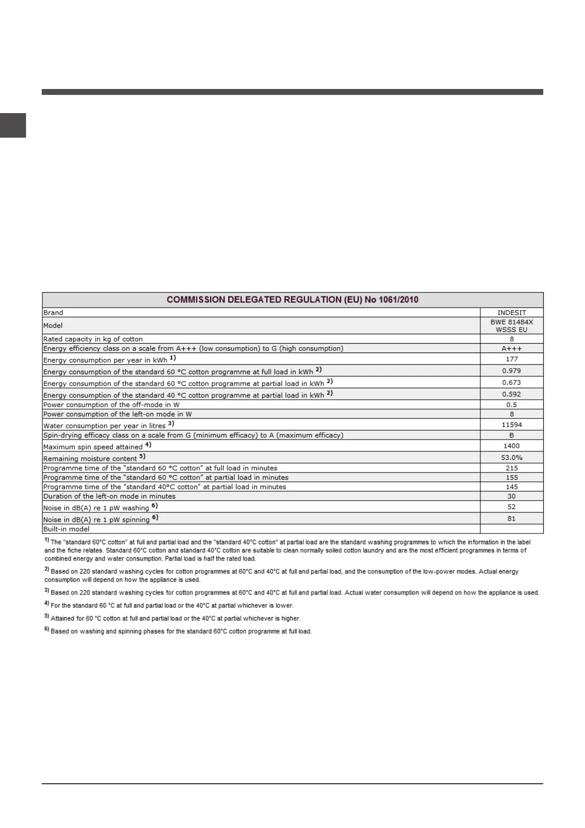 This information can be found on the data plate applied to the rear of the washing machine, and can also be found on the