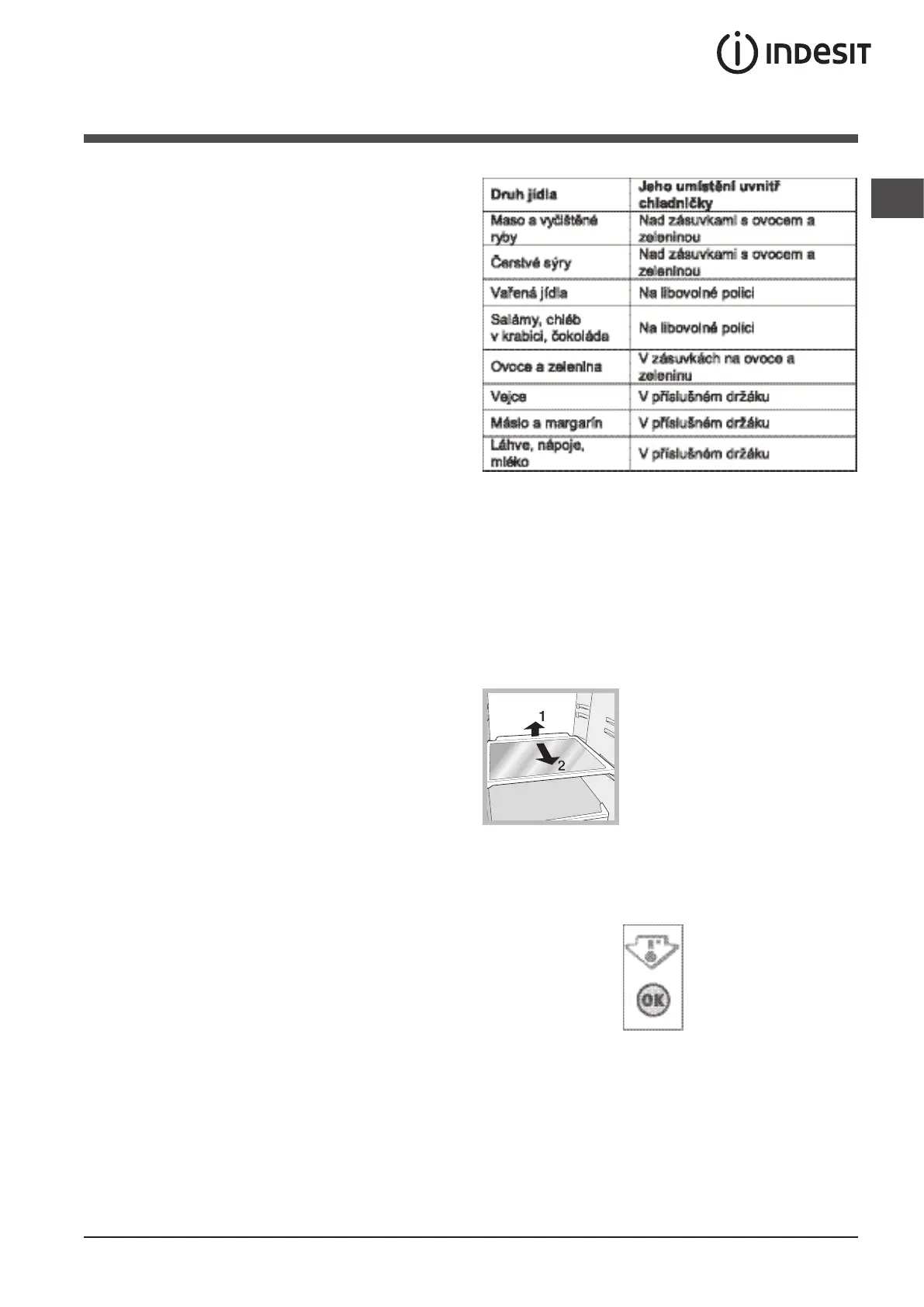 umístění potravin:
