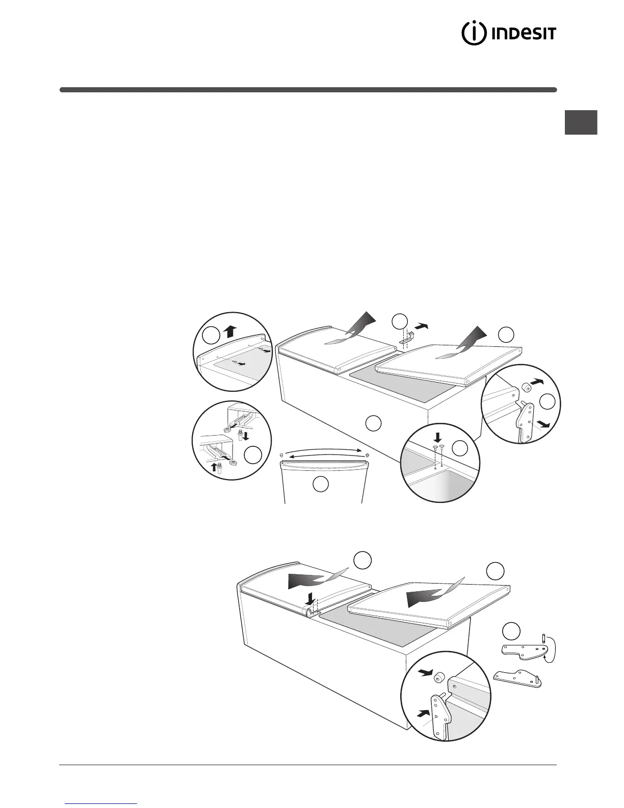 beneden schuiven; de deur uitnemen en voorzichtig op één kant leggen.