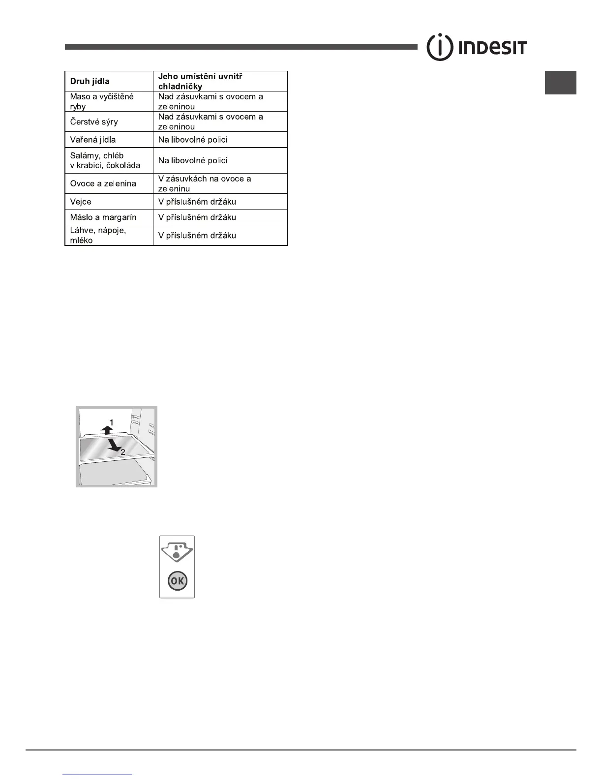 k zasunutí prostorných nádob nebo potravin. Nastavení