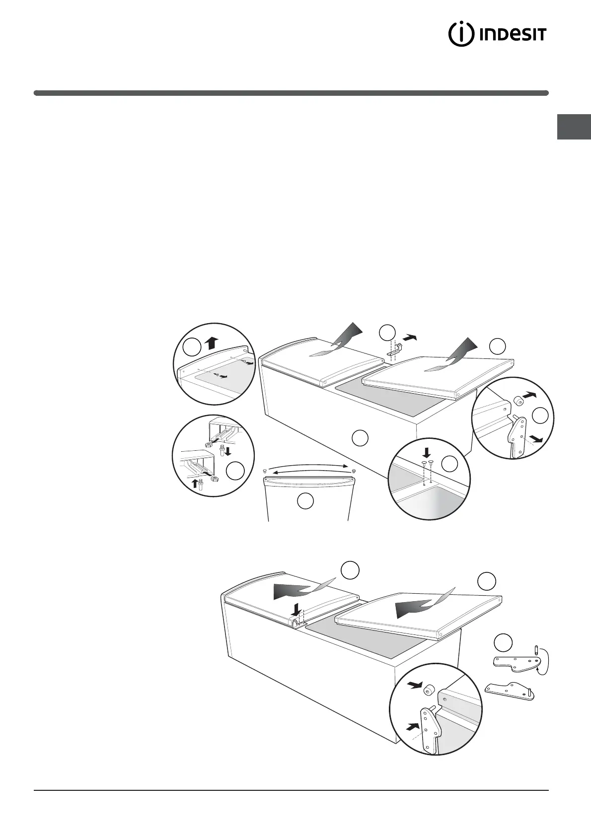 lassen Sie diese nach unten gleiten; die Tür anschließend abnehmen und vorsichtig auf eine Seite stellen.