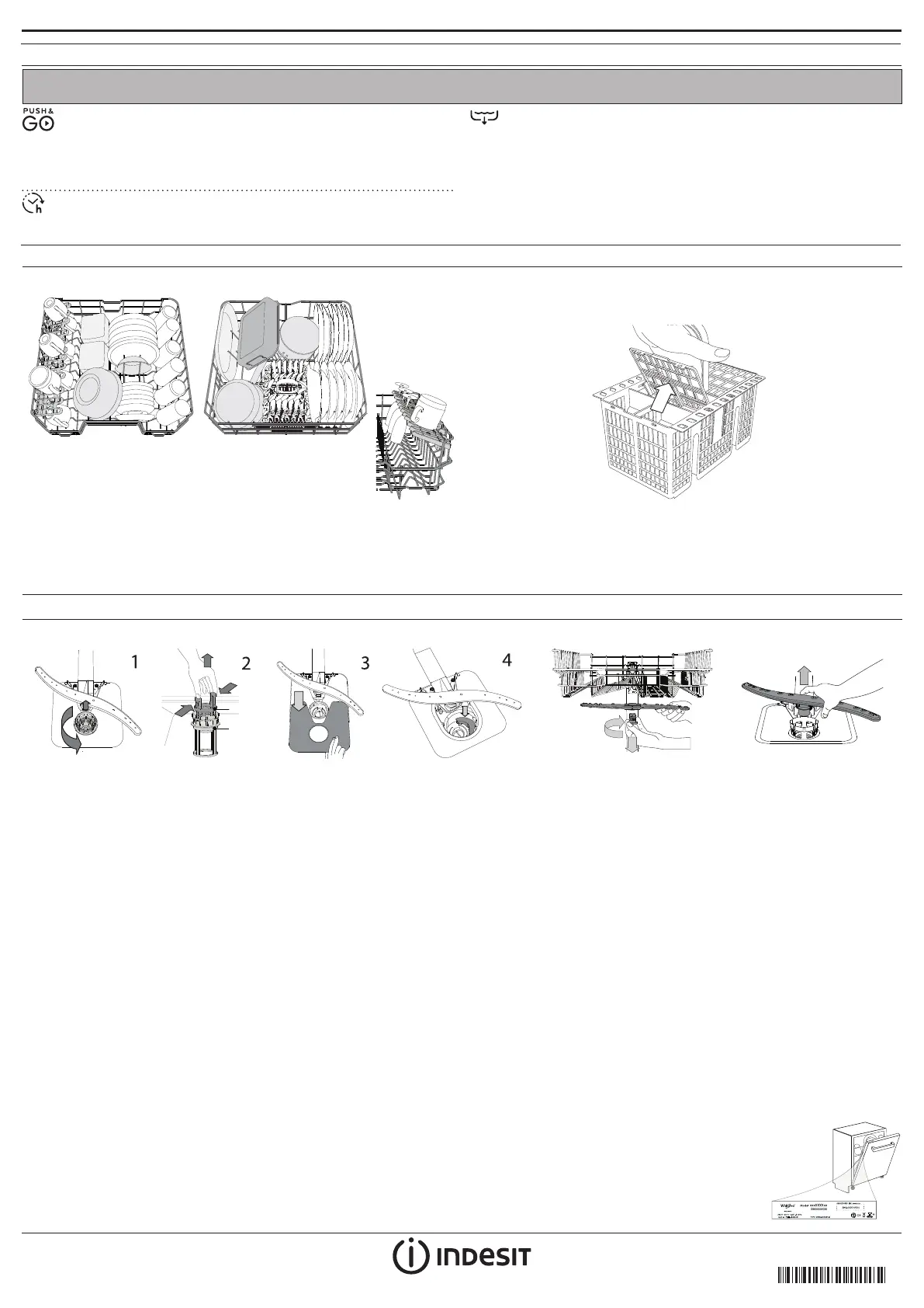 The cutlery basket should be positioned only at the front of the lower rack.