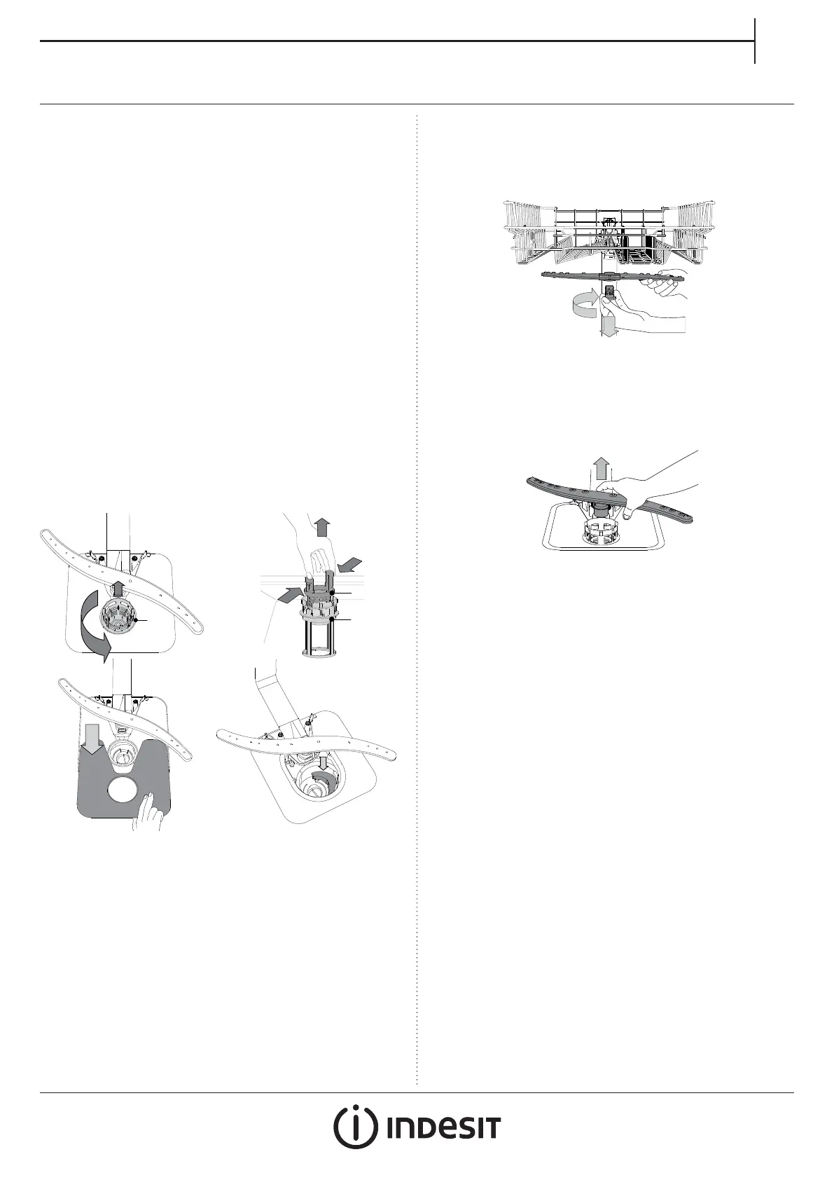 De onderste sproeierarm kan worden verwijderd door het omhoog te