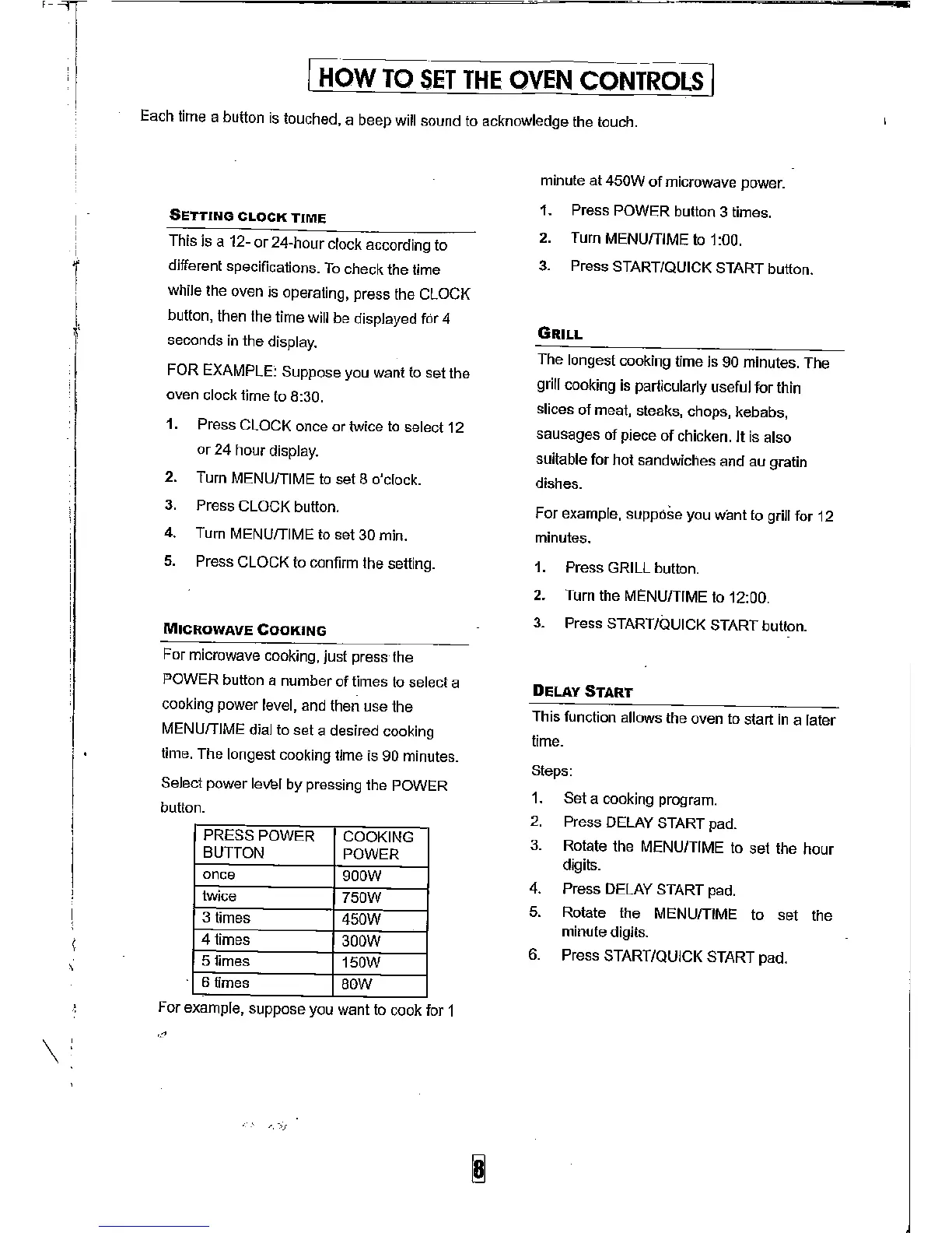 Indesit D90D25ESP-A5 - How to Set the Oven Controls; Setting Clock Time; Grill; Microwave Cooking
