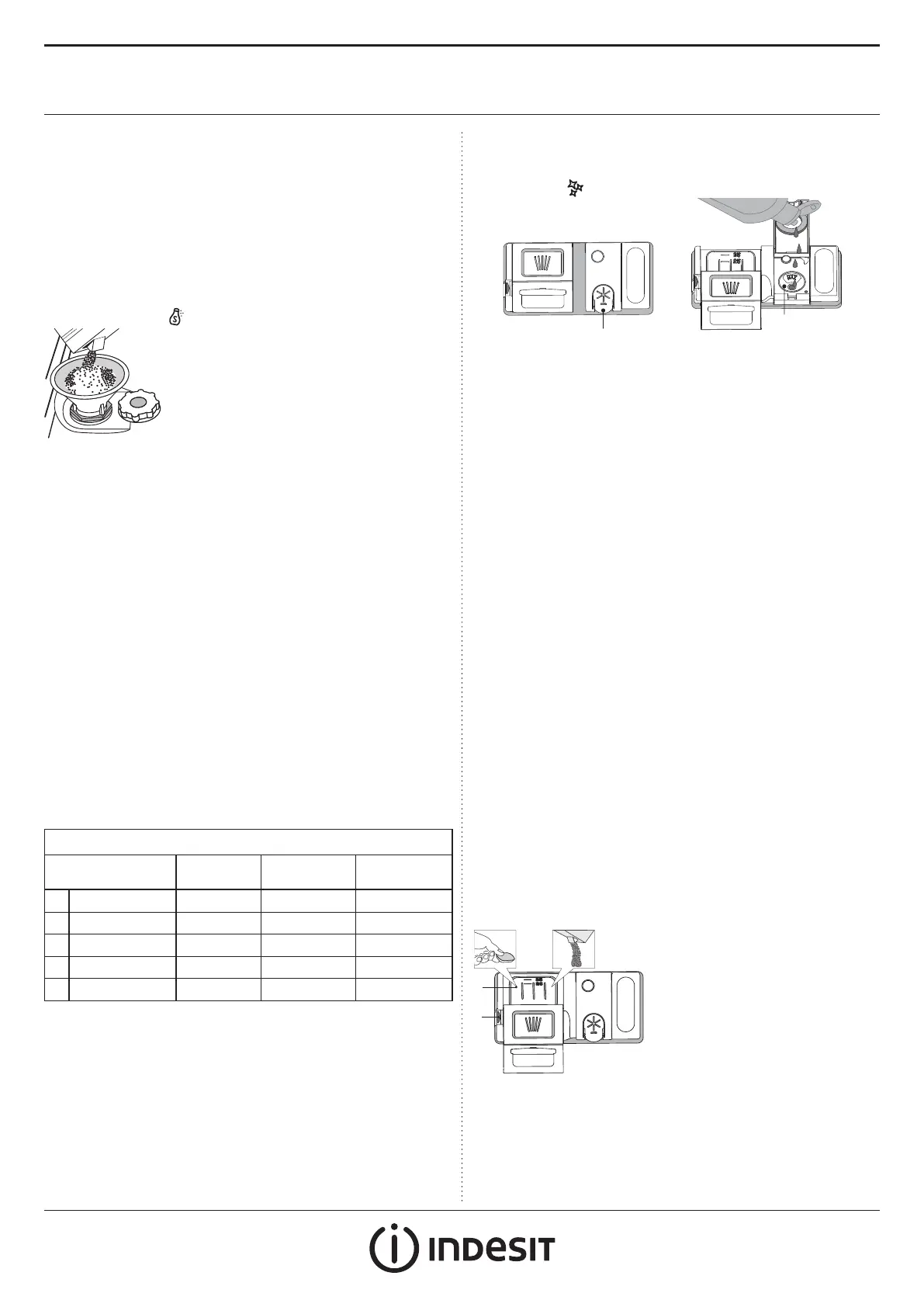• Trykk på knappen P for å velge ønsket nivå for hardhet (se TABELL
