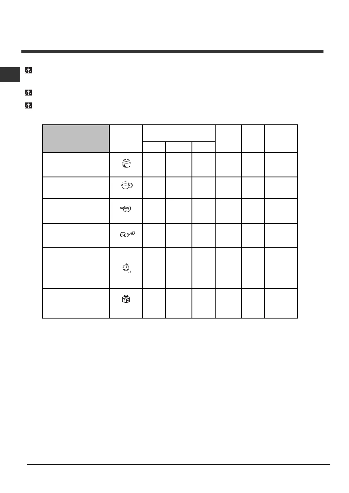 Optimum performance levels when using the "Rapide wash" cycles can be achieved by observing the maximum amounts of crockery