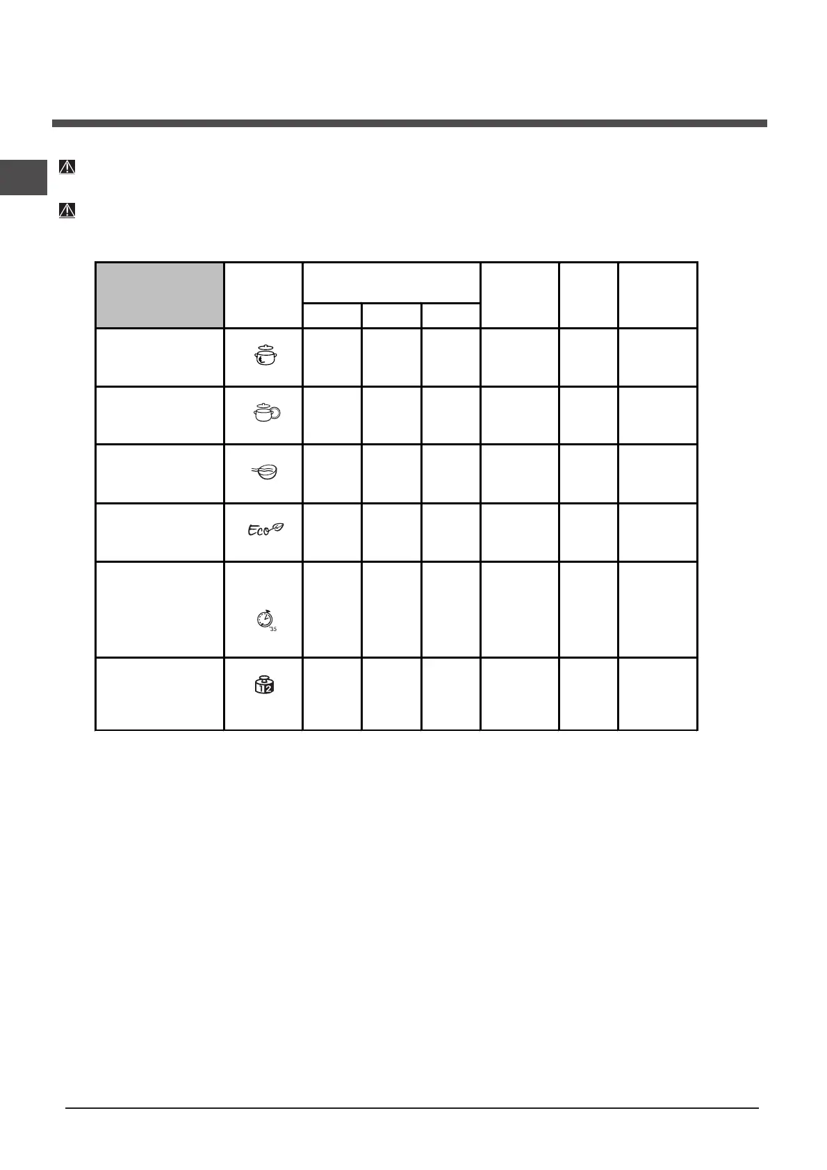 Pour obtenir des performances optimales avec les programmes "Rapide" il est conseillé de respecter le nombre de couverts