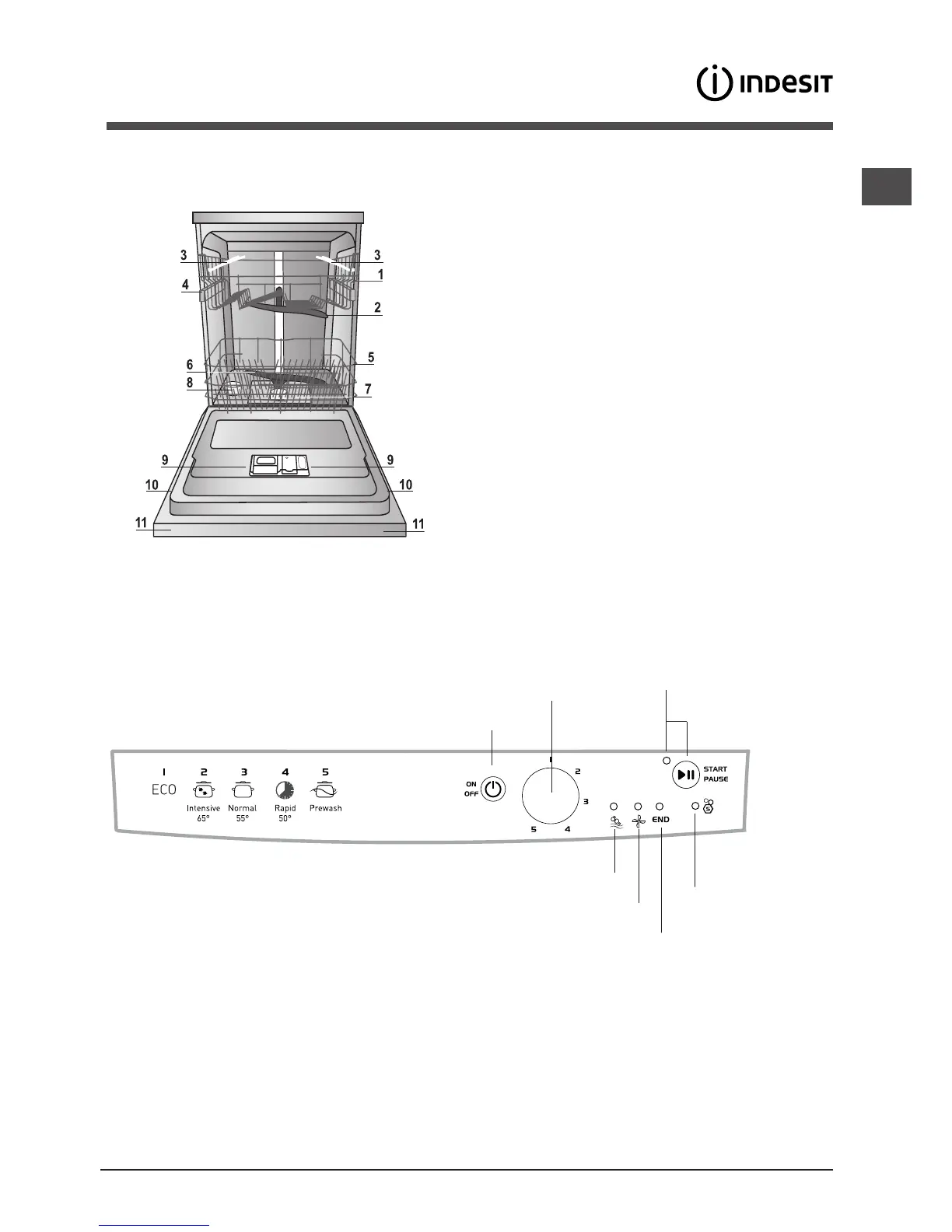 Indesit DFG 15B1 - Description of the Appliance; Overall View; Control Panel