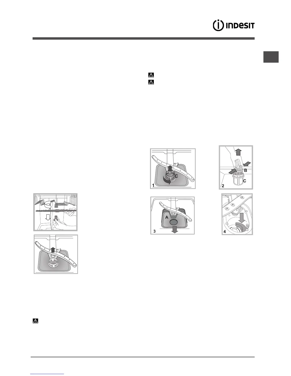 1. okrenite cilindrični lter C suprotno od smjera kazaljke na satu