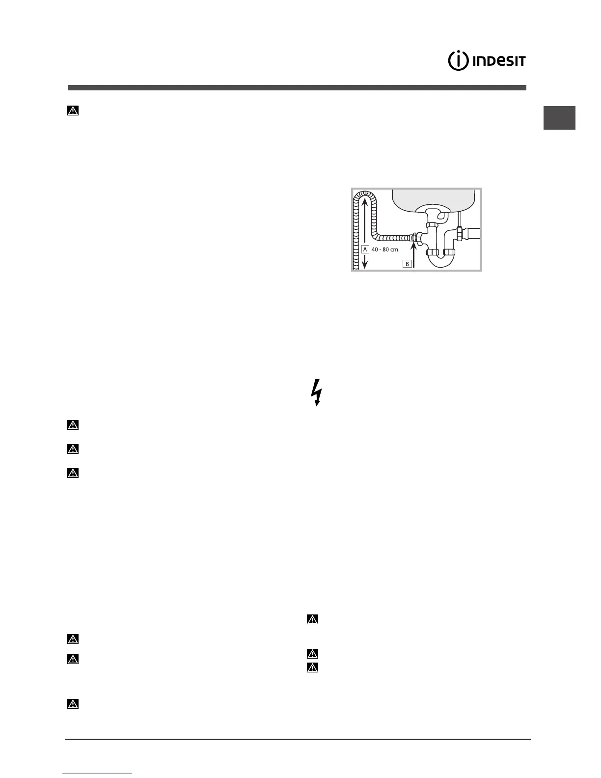 Сливной шланг должен быть расположен на высоте от 40 до
