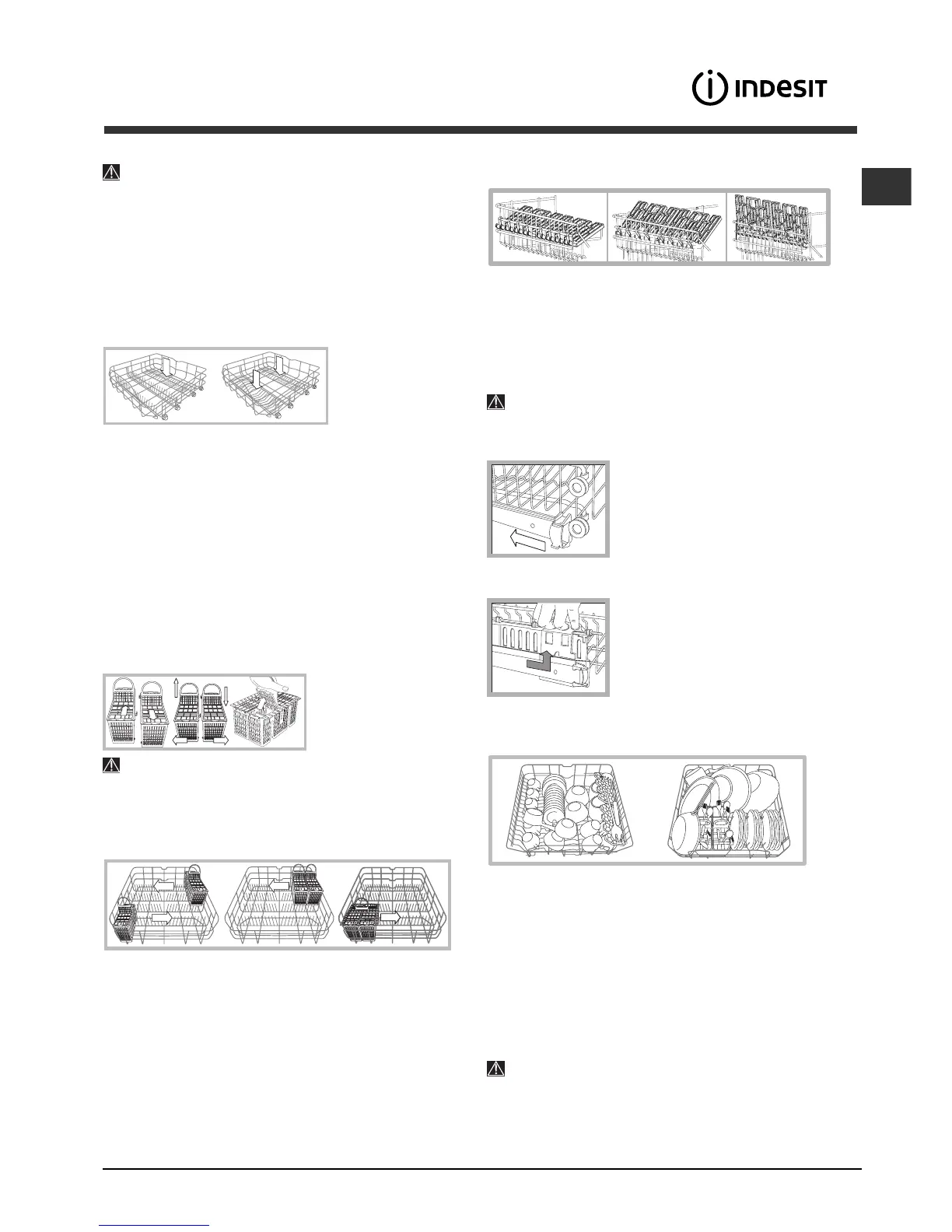 verschiebbar. Der nicht teilbare Besteckkorb darf nur im