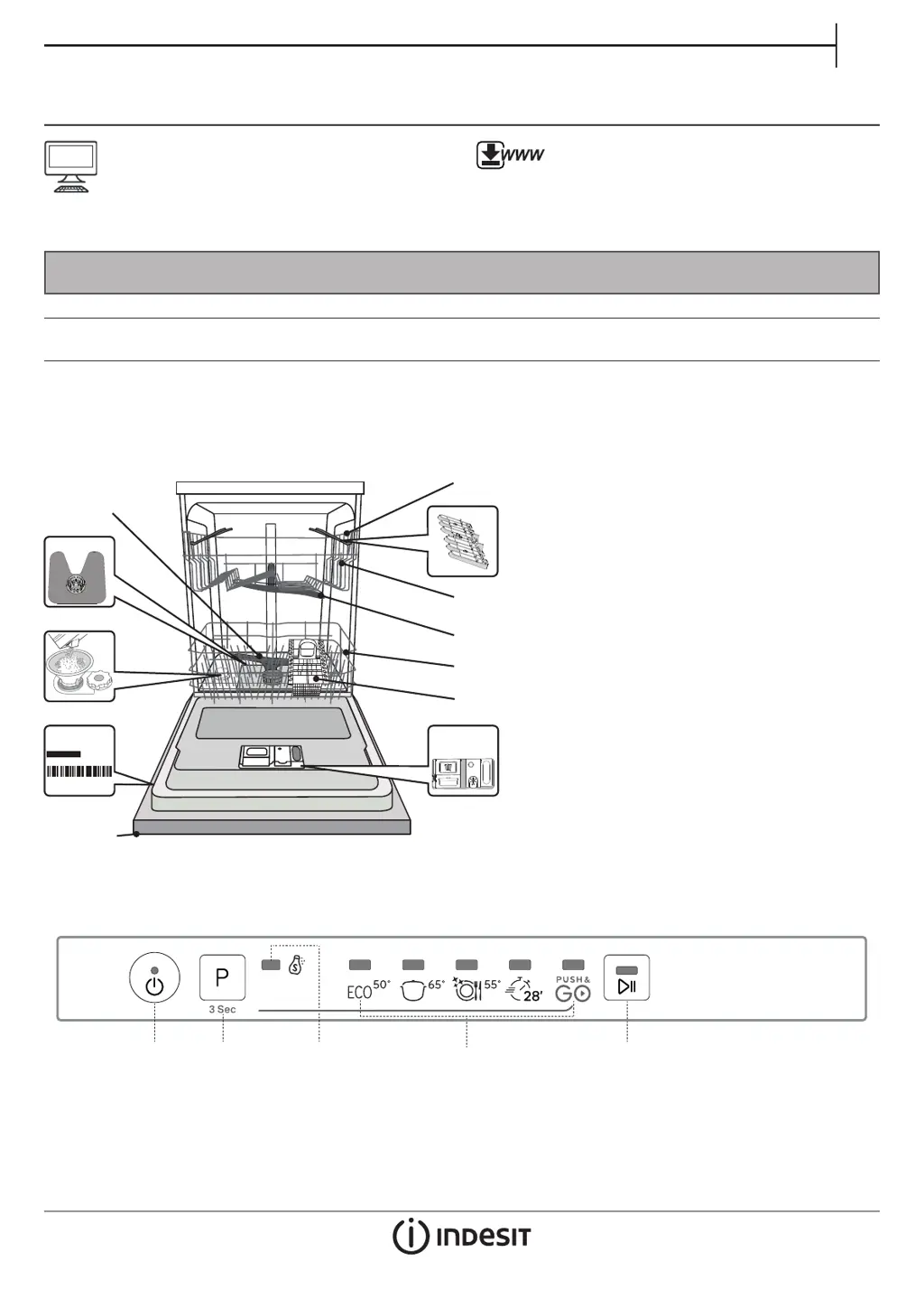 If your Indesit dishwasher won't start or respond, ensure it's properly plugged into the socket. If there was a power outage, open the dishwasher door, press the START/Pause button, and close the door within 4 seconds. Also, make sure the dishwasher door is firmly closed until you hear a click. If the door was opened for more than 4 seconds during a cycle, press START/Pause and close the door within 4 seconds. If it still doesn't respond, try switching the appliance off and on again after a minute, or unplug it for a minute and then plug it back in.