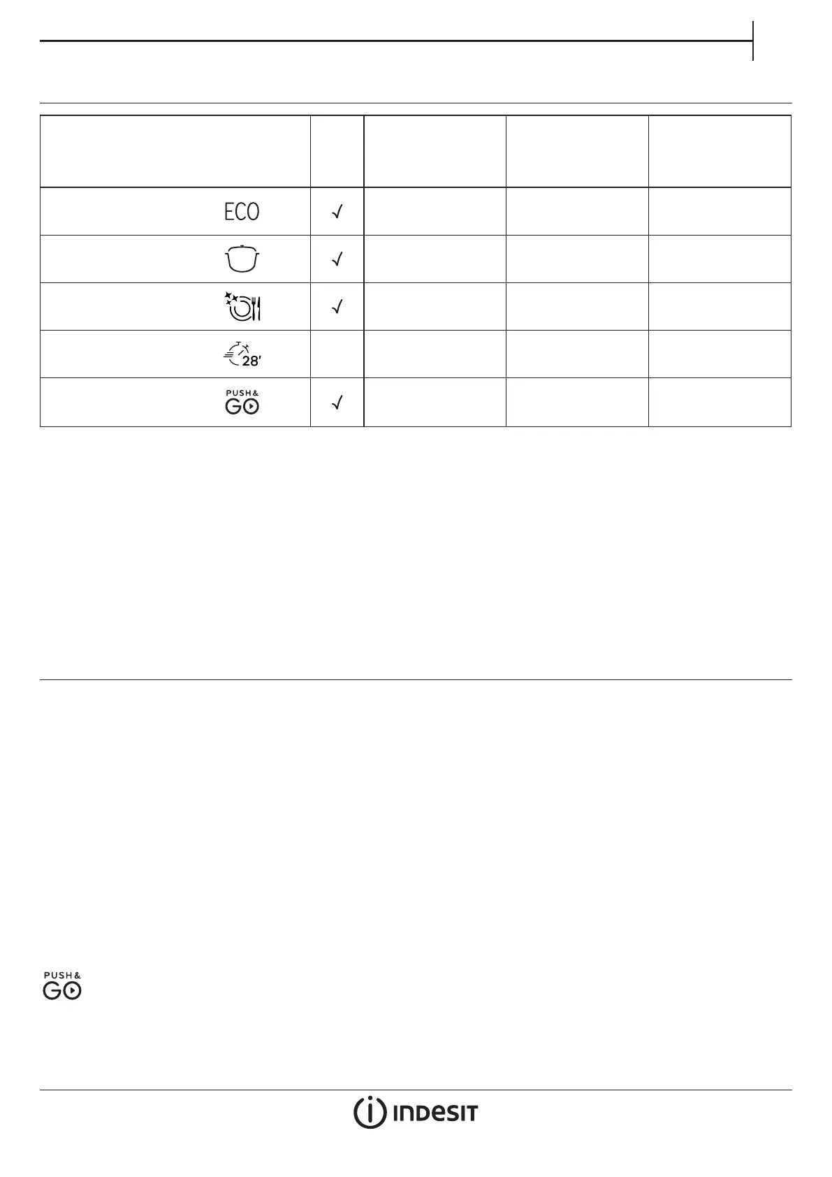 To select Push&GO program, switch on appliance, press only P button for 3 seconds (corresponding indicator lights up) and close the