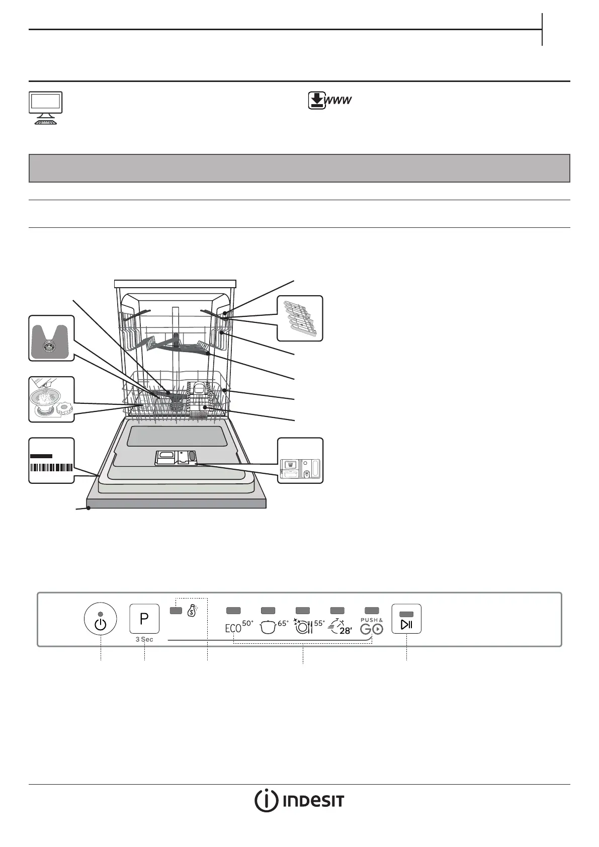 docs.indesit.eu, volg de Aanwijzingen achteraan deze