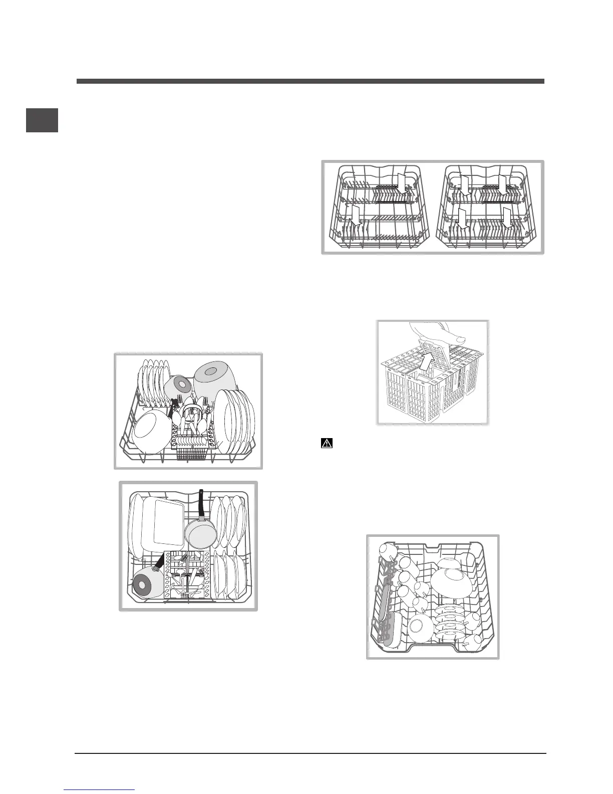 The lower rack can hold pans, lids, dishes, salad bowls, cutlery