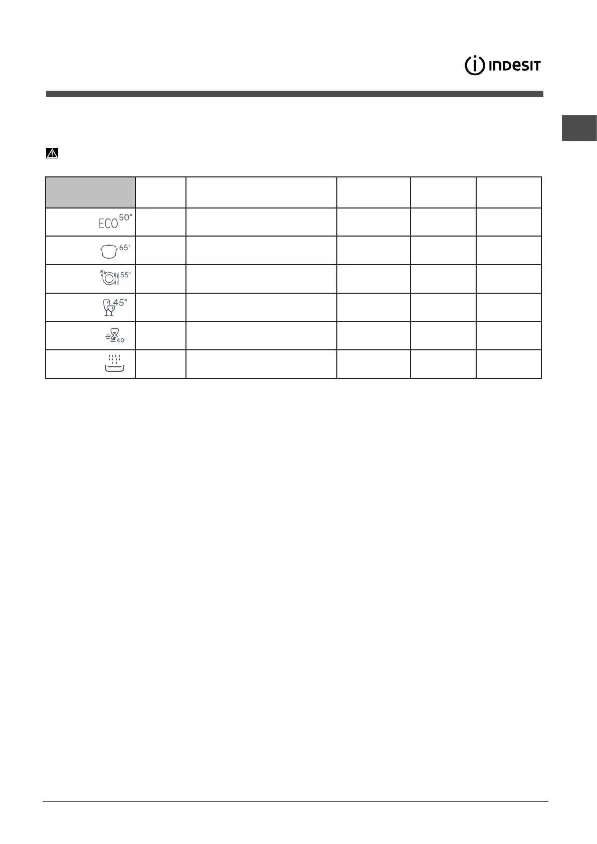 5. Fast cycle to be used for slightly dirty dishes (ideal for 2 place settings) 25 gr/ml – 1 Tab