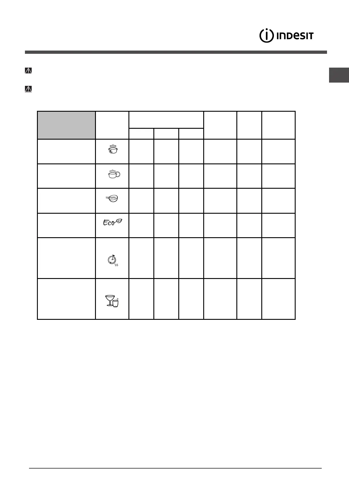 Pour obtenir des performances optimales avec les programmes "Rapide" il est conseillé de respecter le nombre de couverts