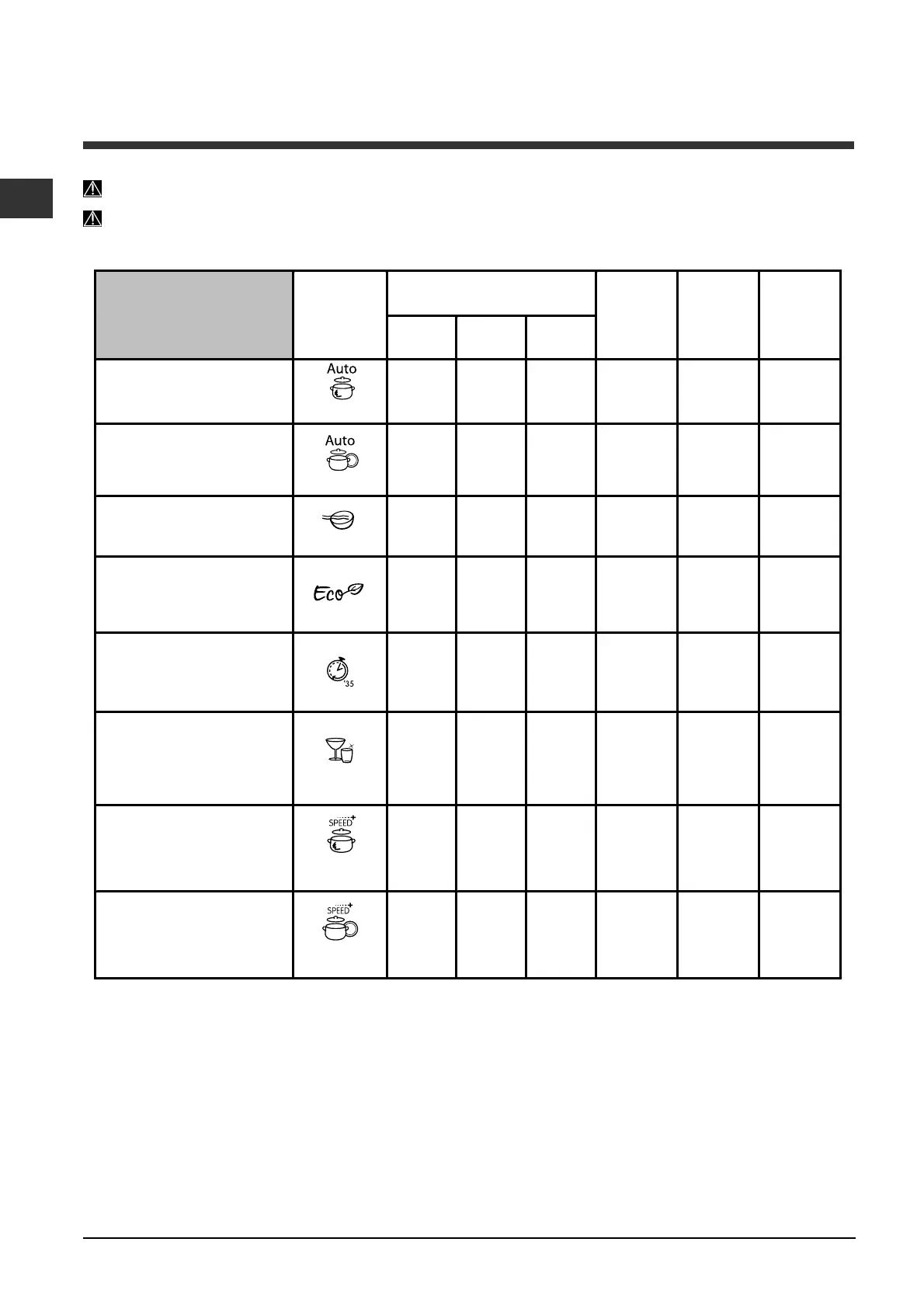 Las mejores prestaciones de los programas "Rápido" se obtienen preferiblemente respetando la cantidad de cubiertos especificados.