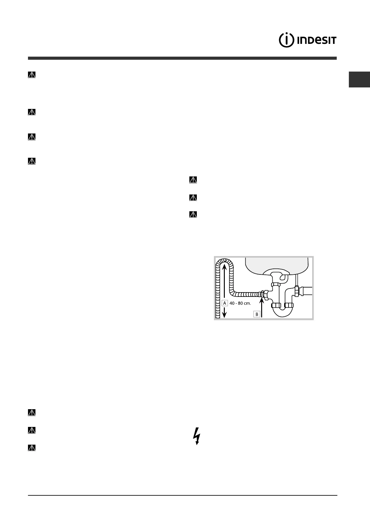 The outlet hose must be at a height ranging from 40 to 80
