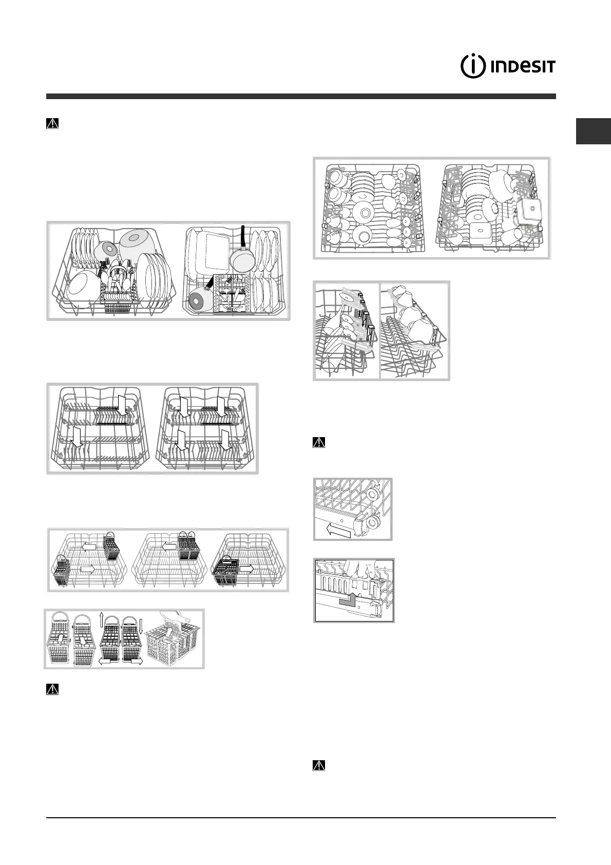 bestek, etc. plaatsen.Grote borden en deksels moeten bij