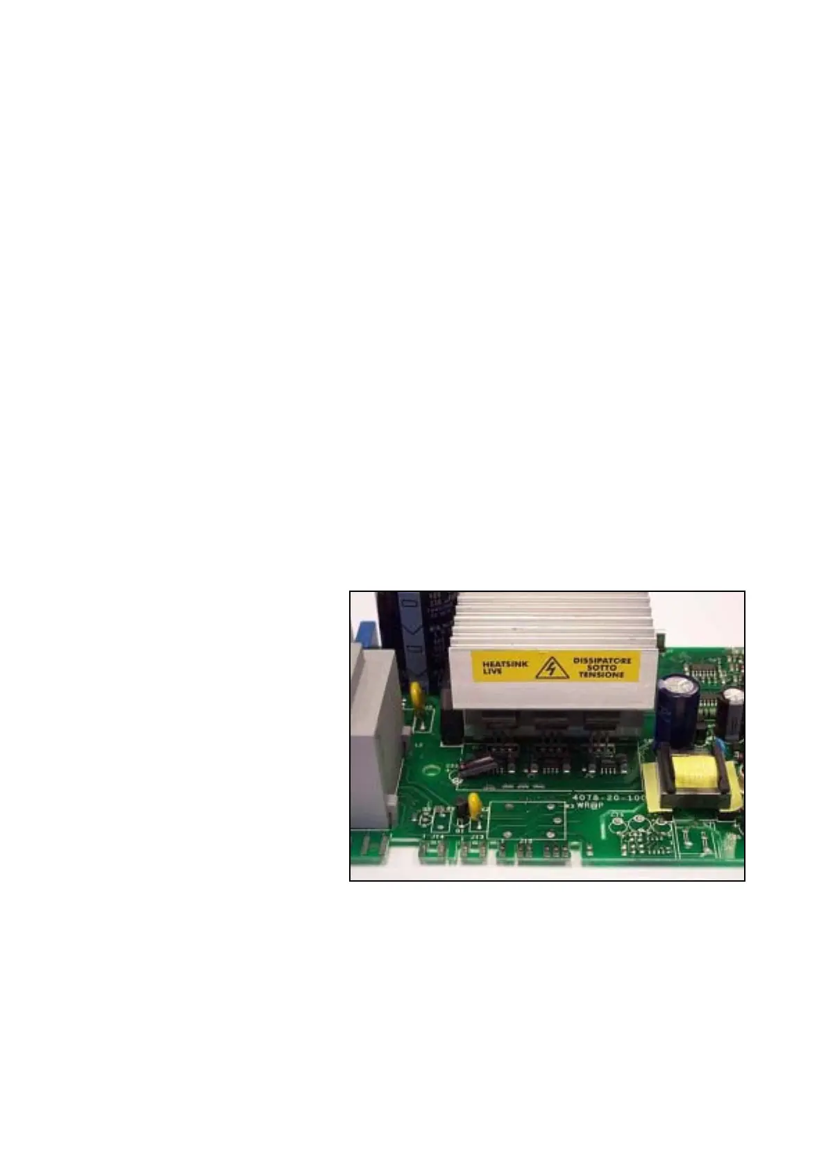 This power board is fitted with a large aluminium heat sink which remains live after the power