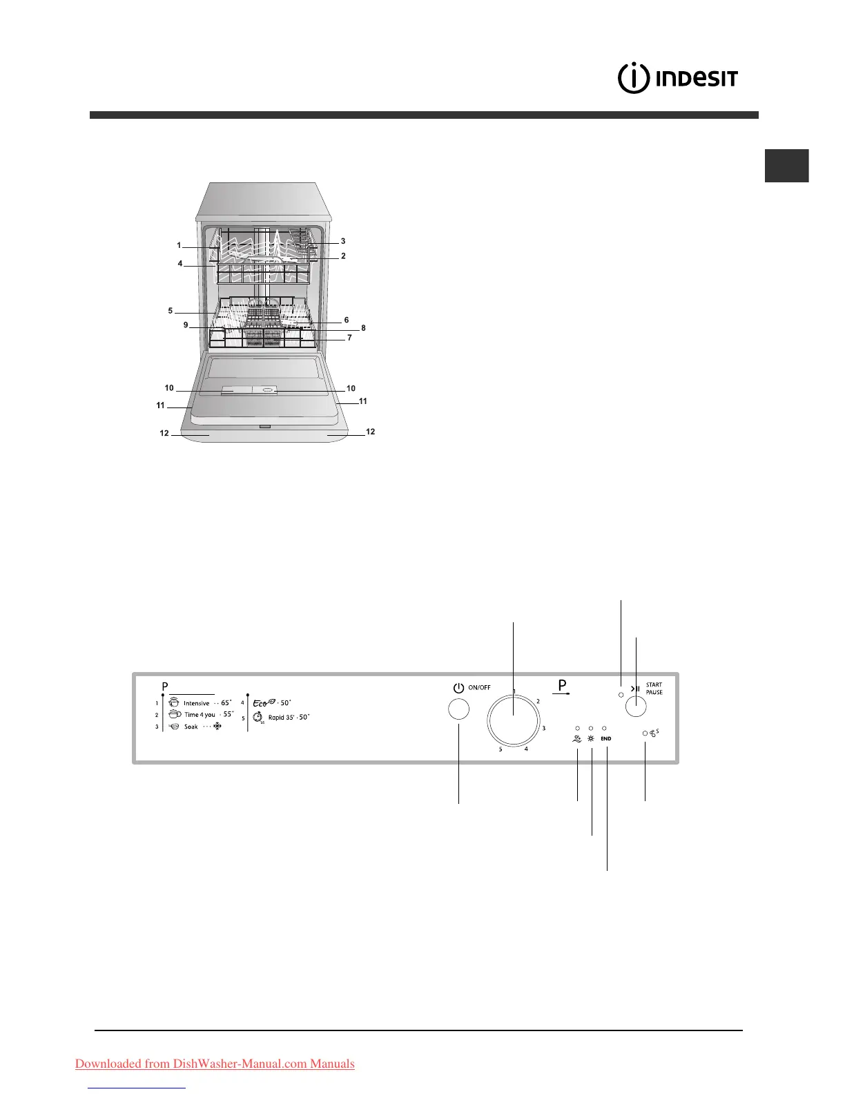 Indesit DPG 15 - Description of the Appliance; Overall View; Control Panel