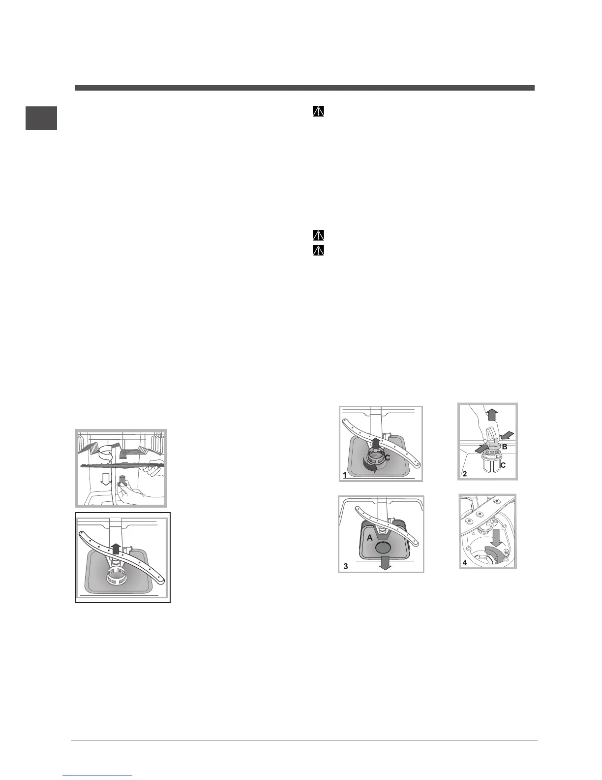 Het kan gebeuren dat er etensresten aan de sproeiarmen