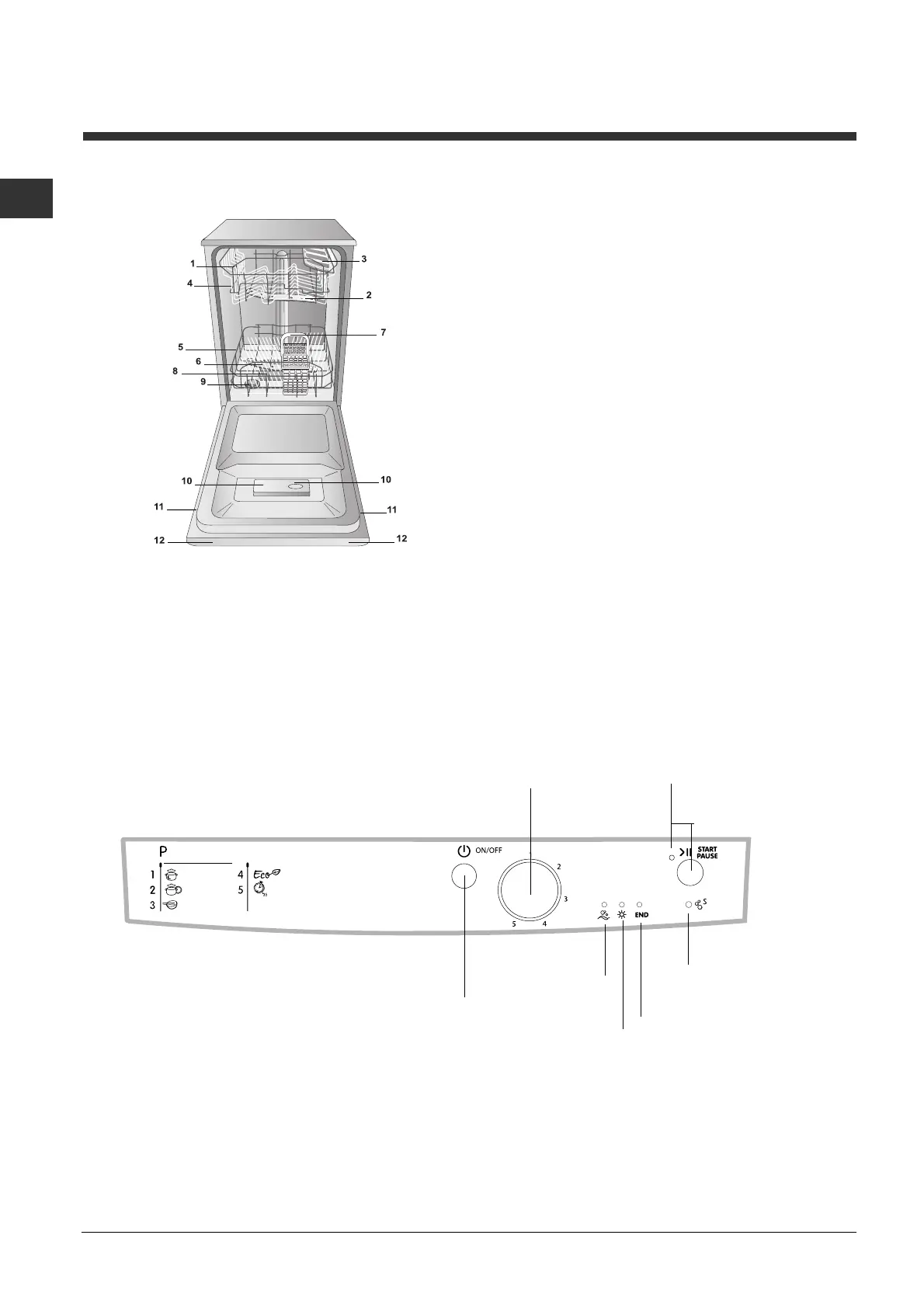 Indesit DSG 051 - Description of the appliance; Overall view; Control panel