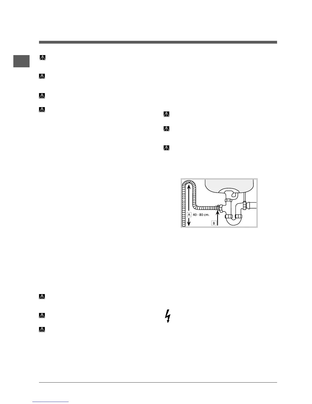 Le tuyau d'évacuation doit être placé entre 40 et 80 cm au-dessus