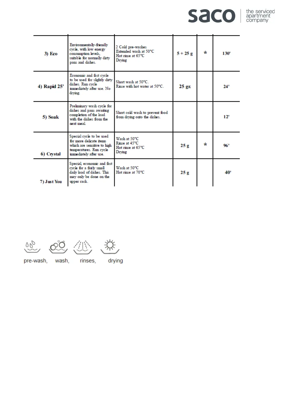 The dishwasher is provided with 4 indicator lights “G” which come on in sequence as the appliance is performing that