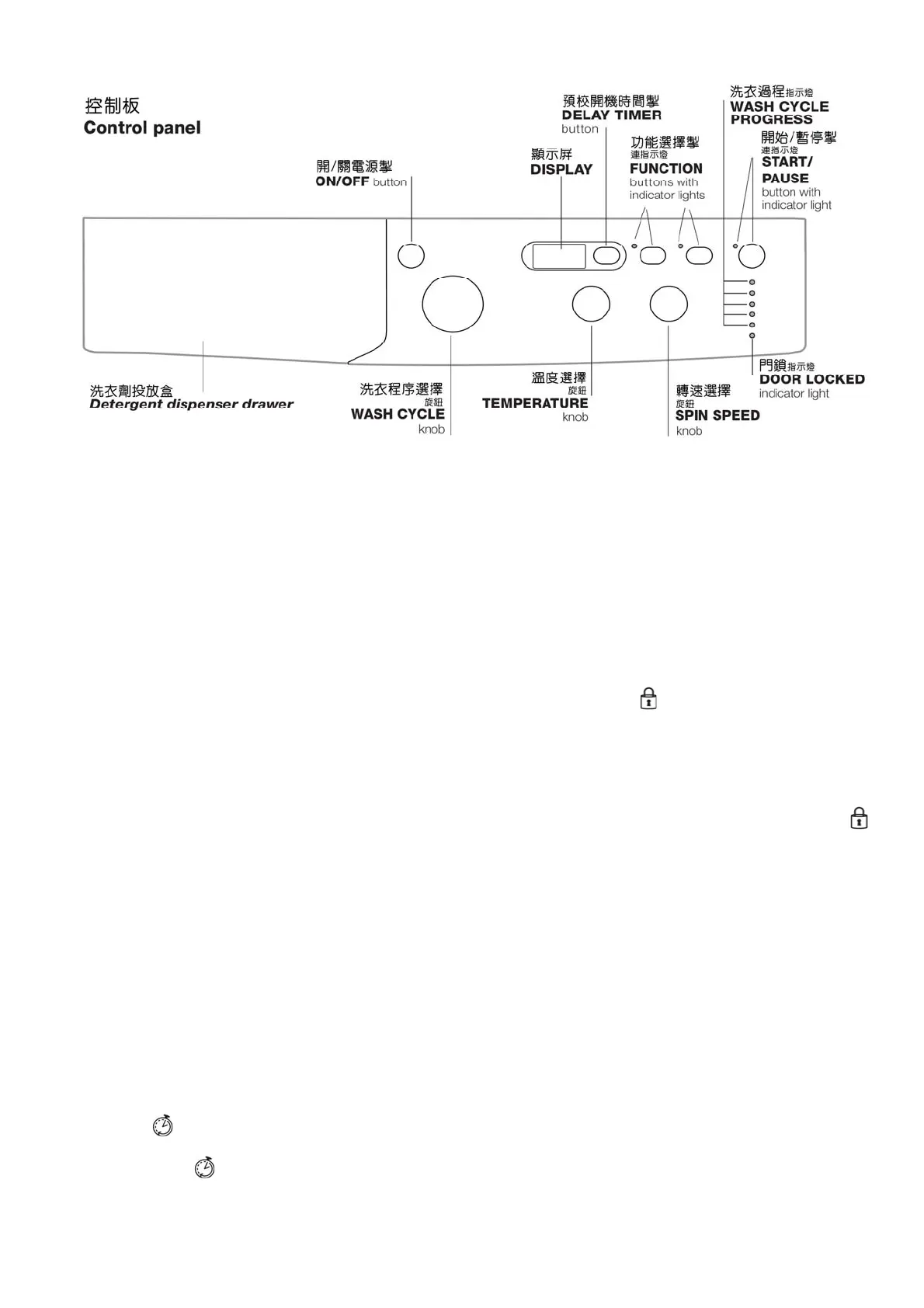 門鎖指示燈:燈亮著表示機門處於鎖閉狀態。(見下頁)