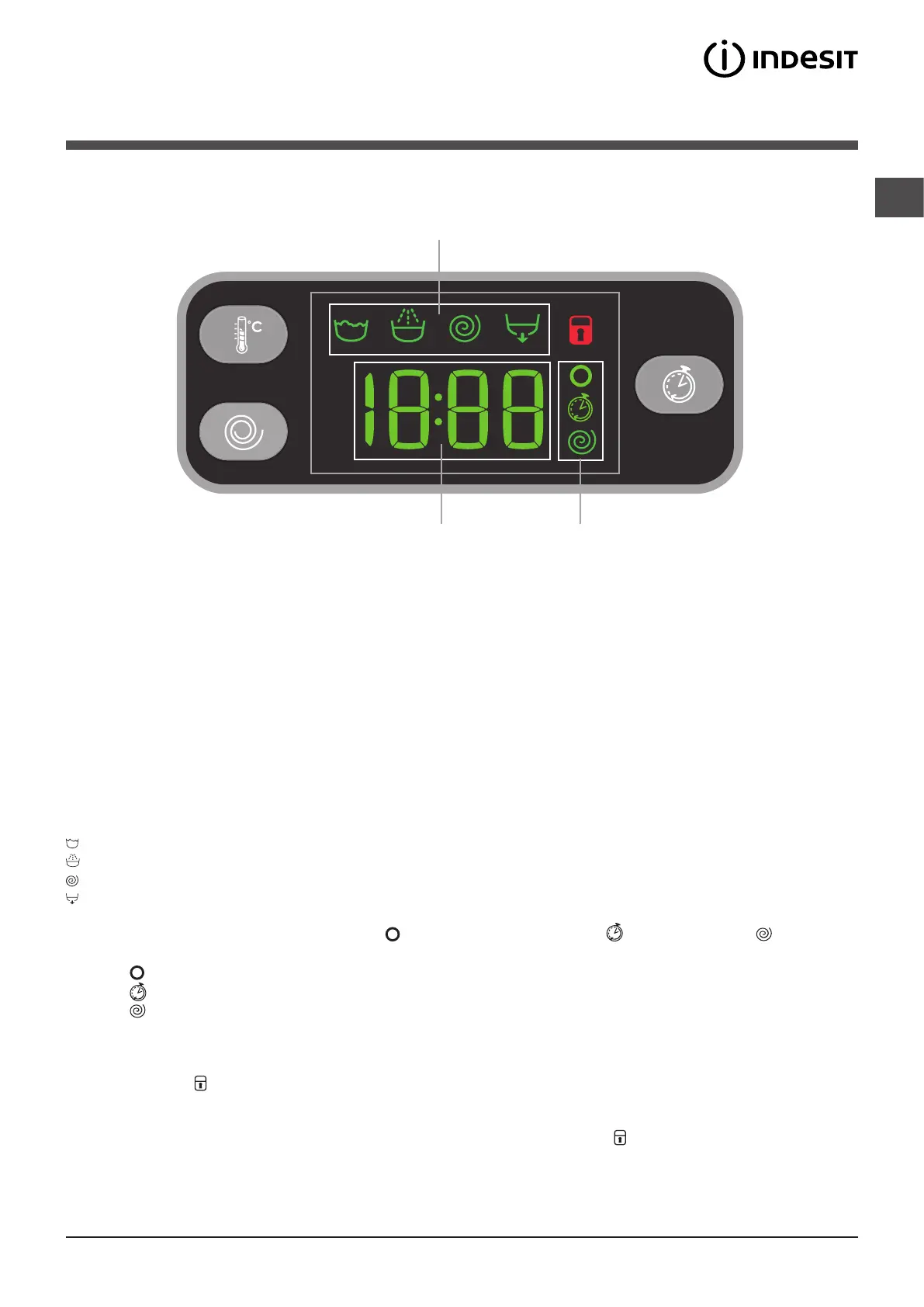 A C feliratmezoben föntrol lefelé a “homérséklet” , a “KÉSLELTETETT INDÍTÁS” és a “centrifugálás” szimbólumai