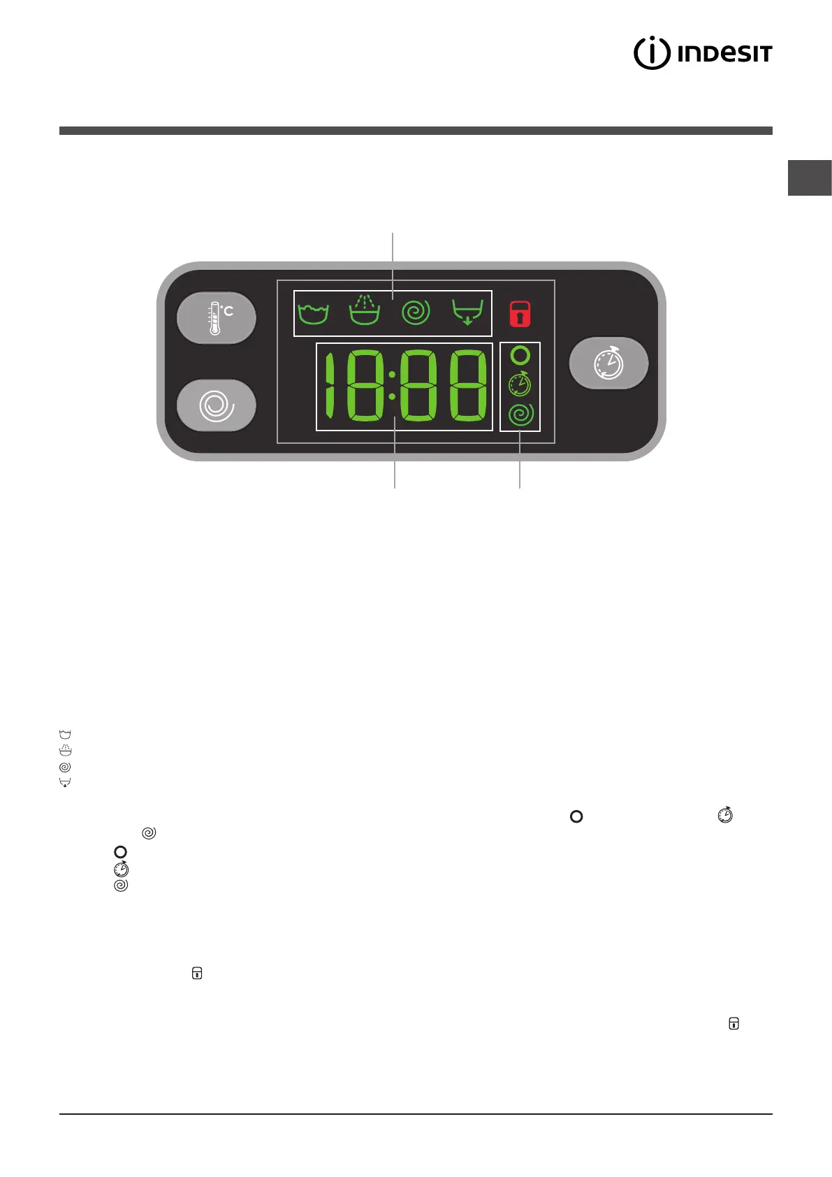 În secţiunea B sunt aşate „fazele de spălare” prevăzute pentru ciclul selecţionat şi cele în curs de desfăşurare, în cazul
