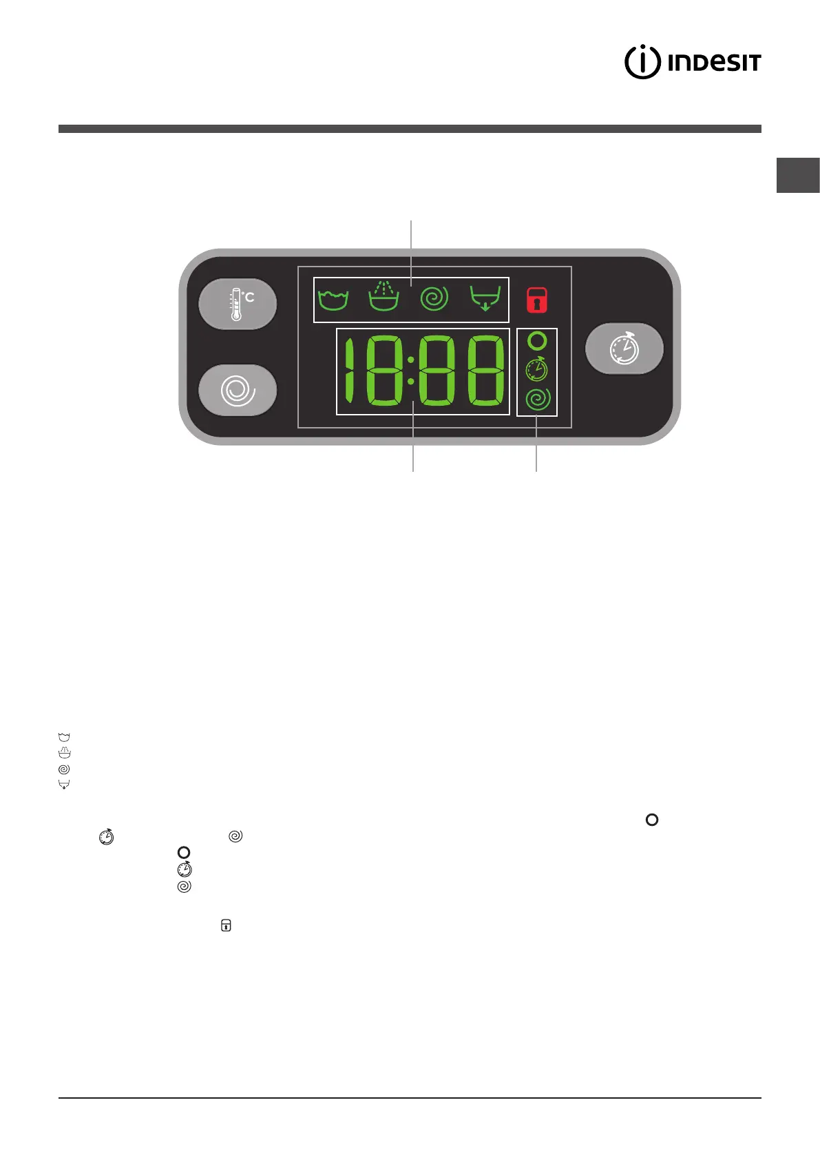 В сектор B ще се изобразят „фазите на пране“, предвидени за избрания цикъл, а при включена програма се