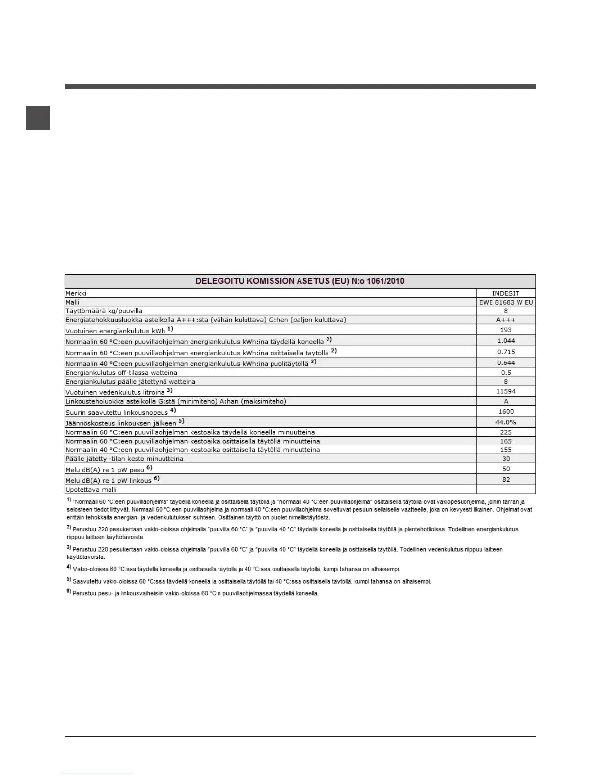 Nämä tiedot löytyvät tietolaatasta, joka sijaitsee pyykinpesukoneen takapuolella sekä etupuolelta avaamalla luukku.