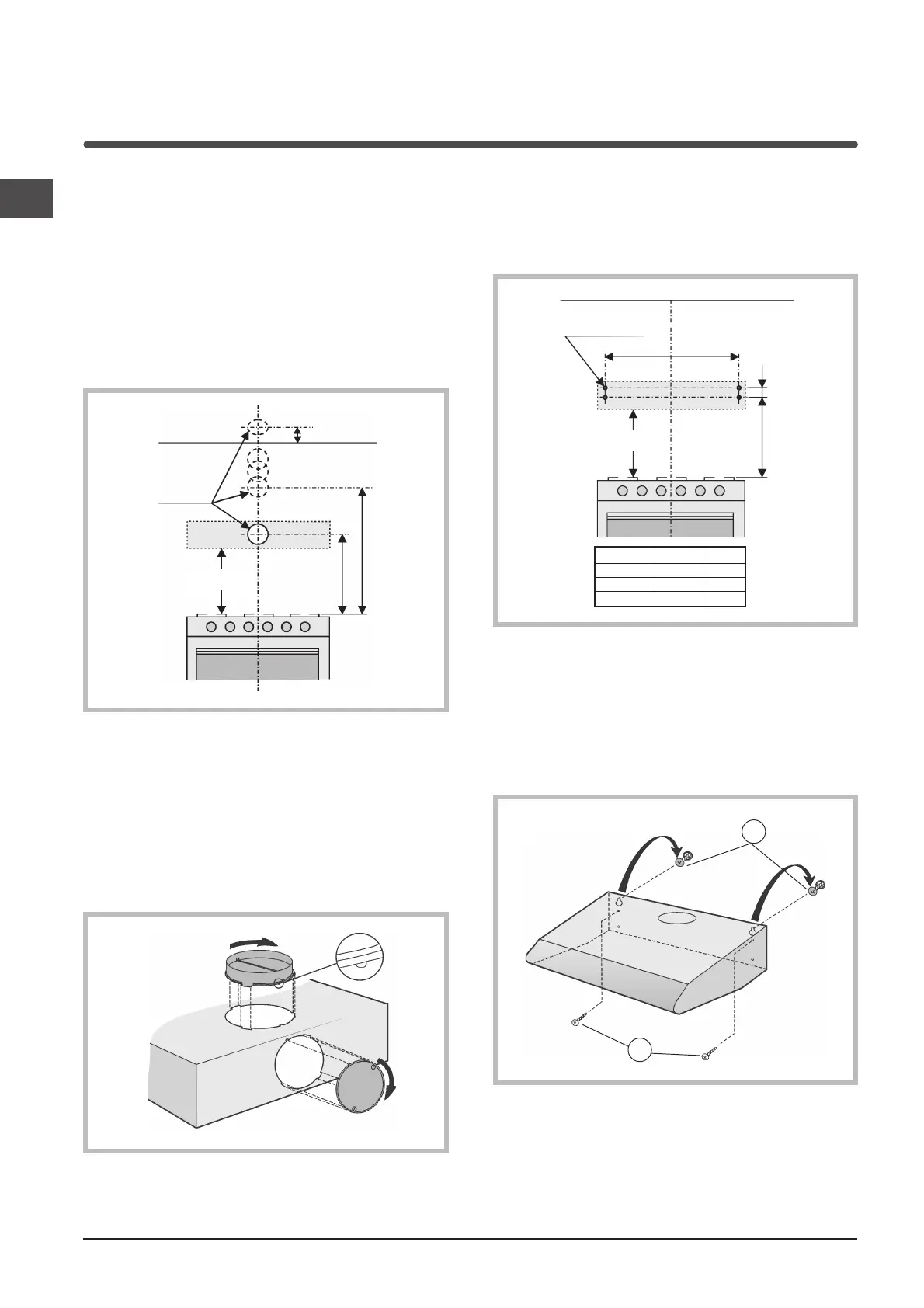 c) Hang the hood onto the 2 screws and tighten the