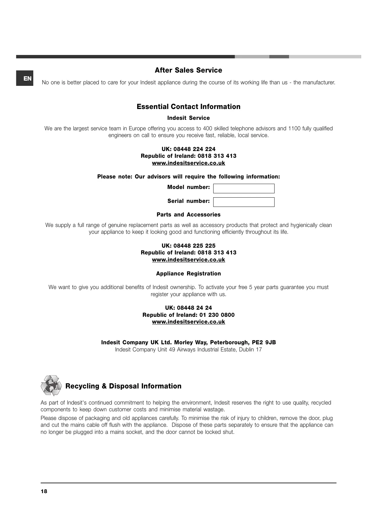 As part of Indesit's continued commitment to helping the environment, Indesit reserves the right to use quality, recycled