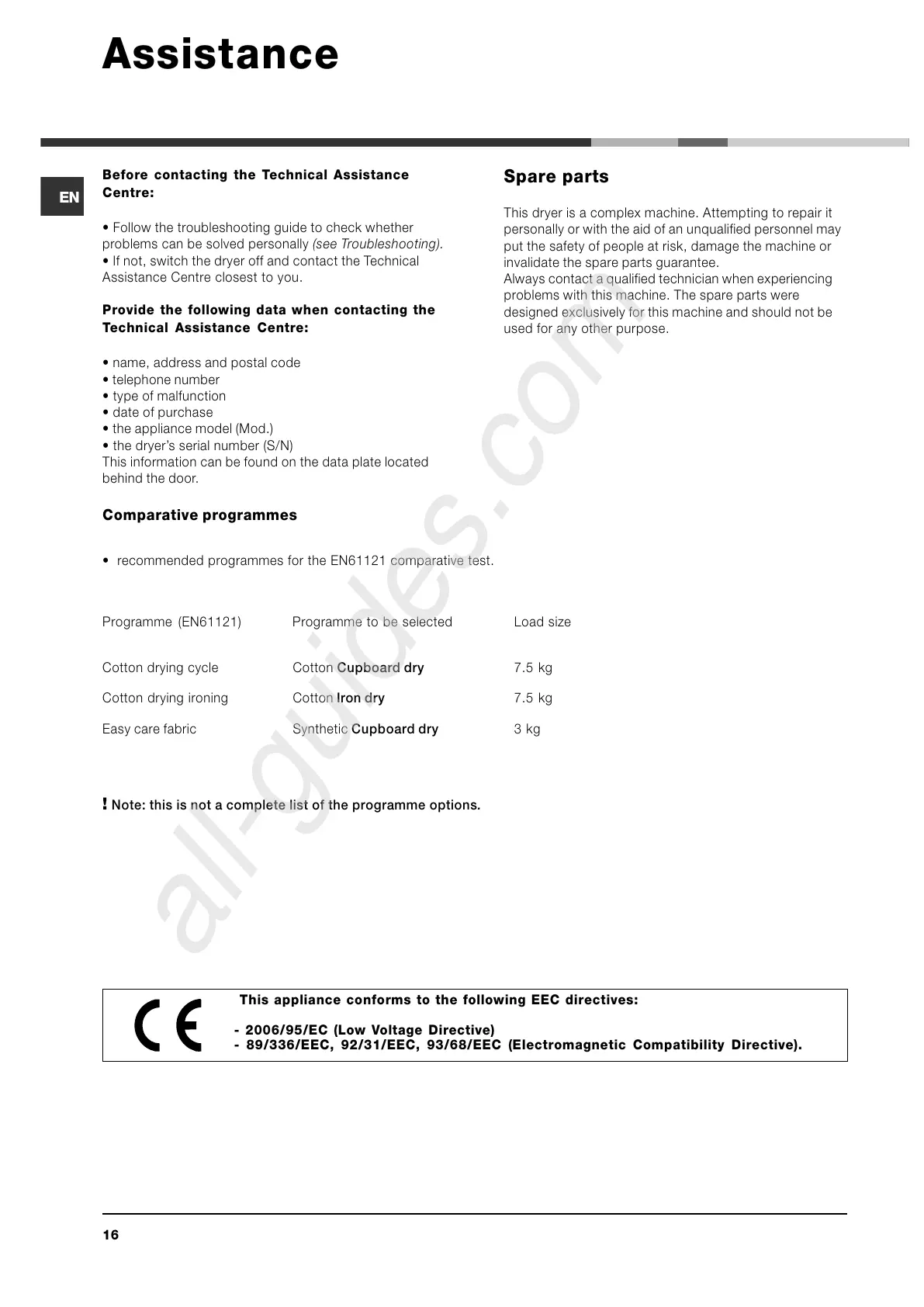 If not, switch the dryer off and contact the Technical