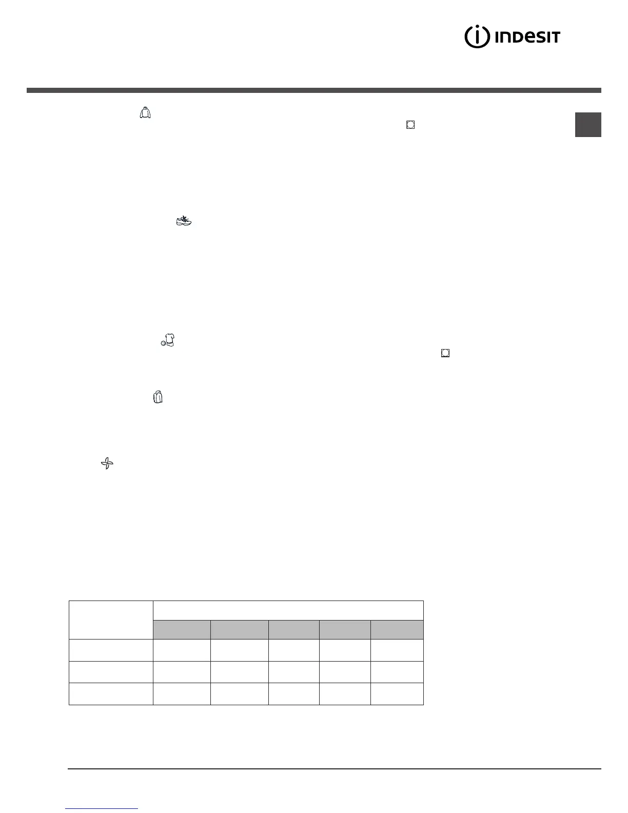 The duration of the timed drying cycle to be selected depends on the size of the load, on the fabric to be dried (see Table) and the