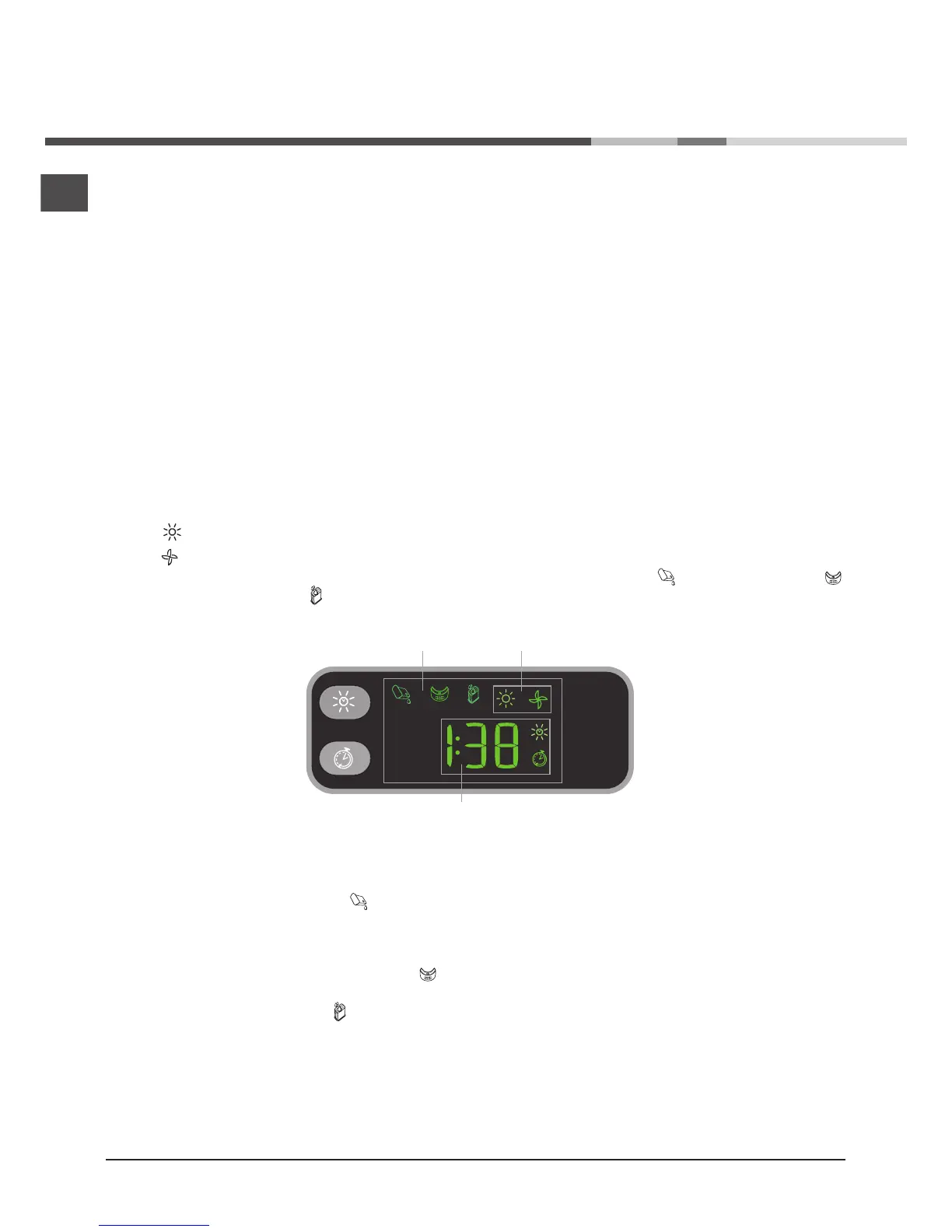 In section A, the selected “Timed drying” value is displayed; if the “Delay start” function was set, the time remaining to the start of the