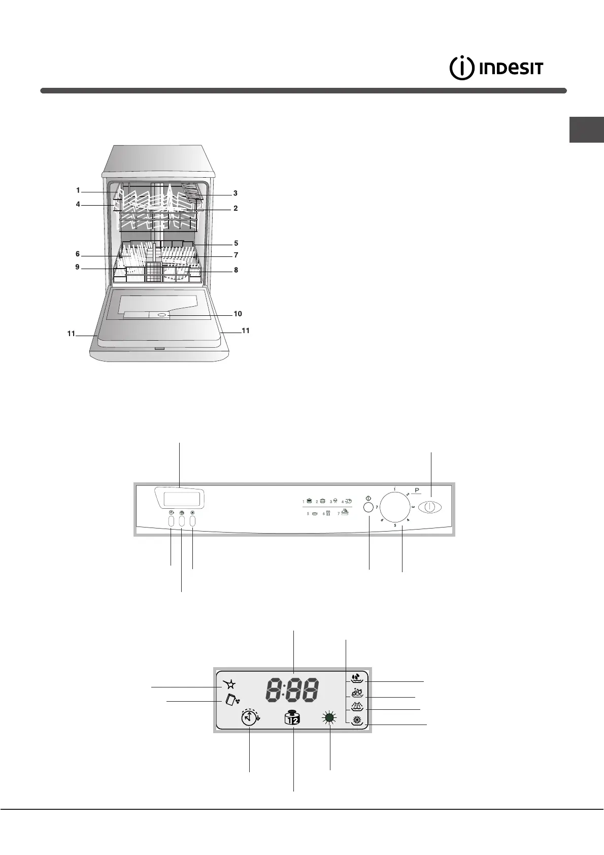 Indesit IDE 1000 - Description of the Appliance; Overall View; Control Panel; Display