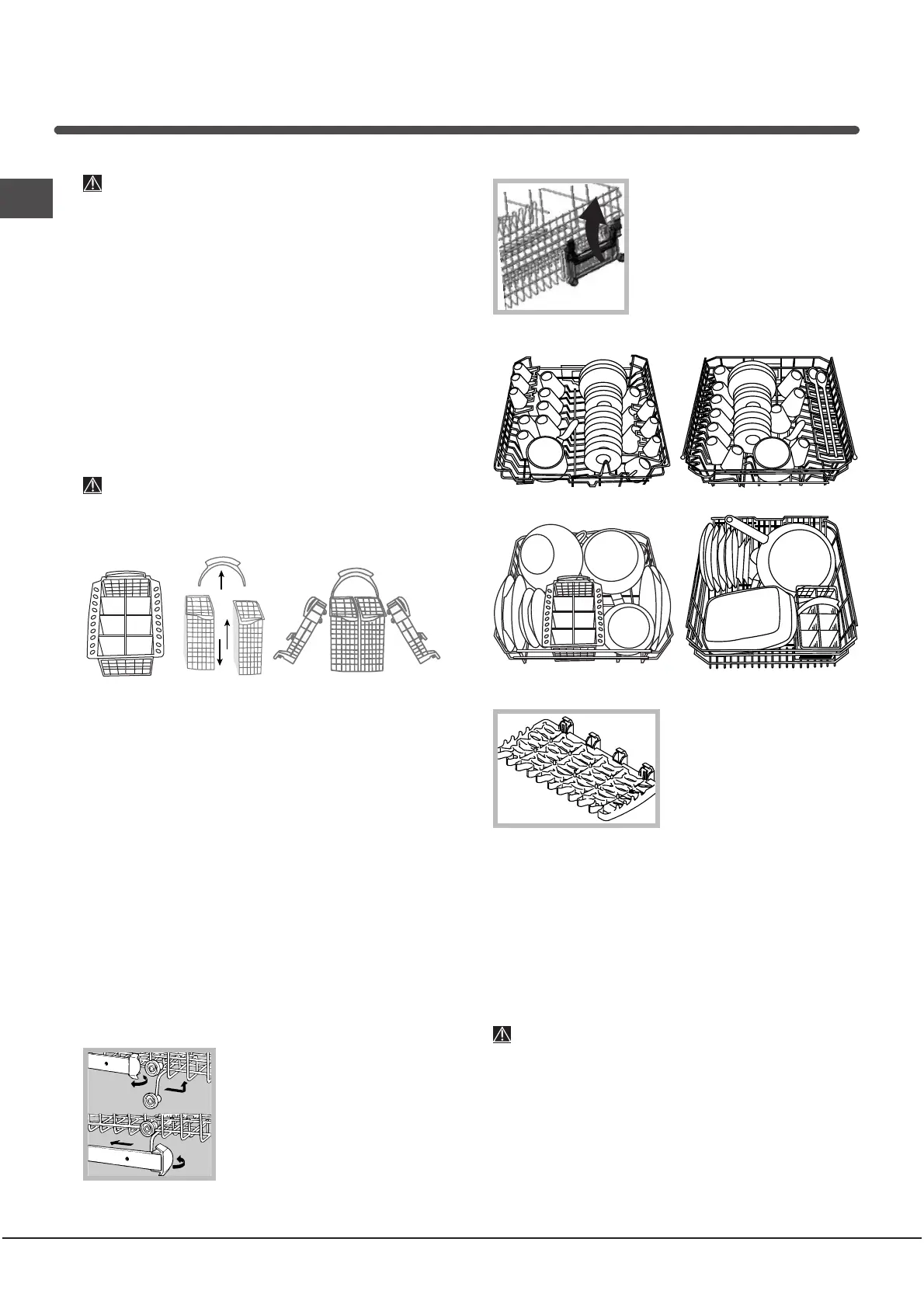 • Sehr tiefe Geschirrteile: in Schrägstellung.