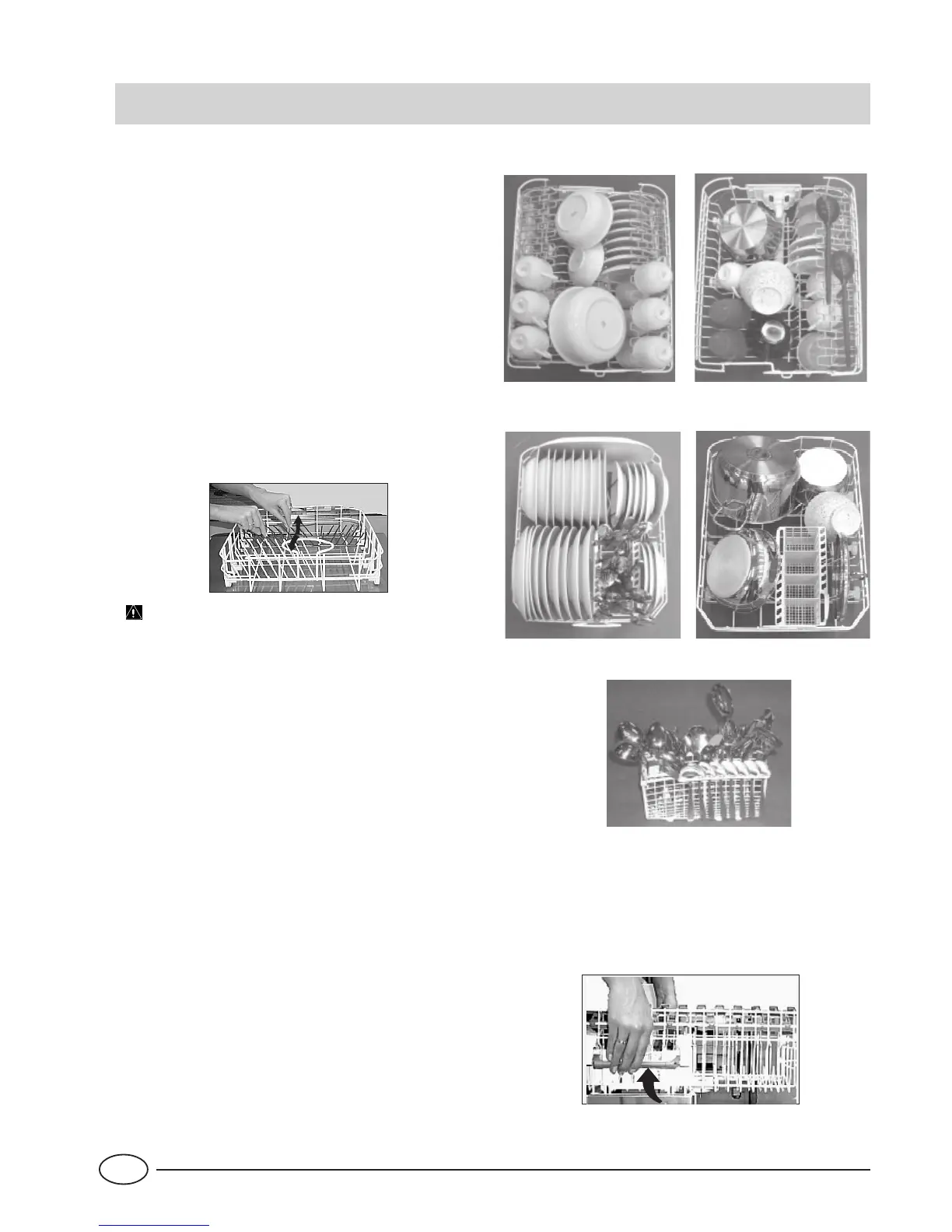 • Sehr tiefe Geschirrteile: vertikal und umgedreht anordnen; das