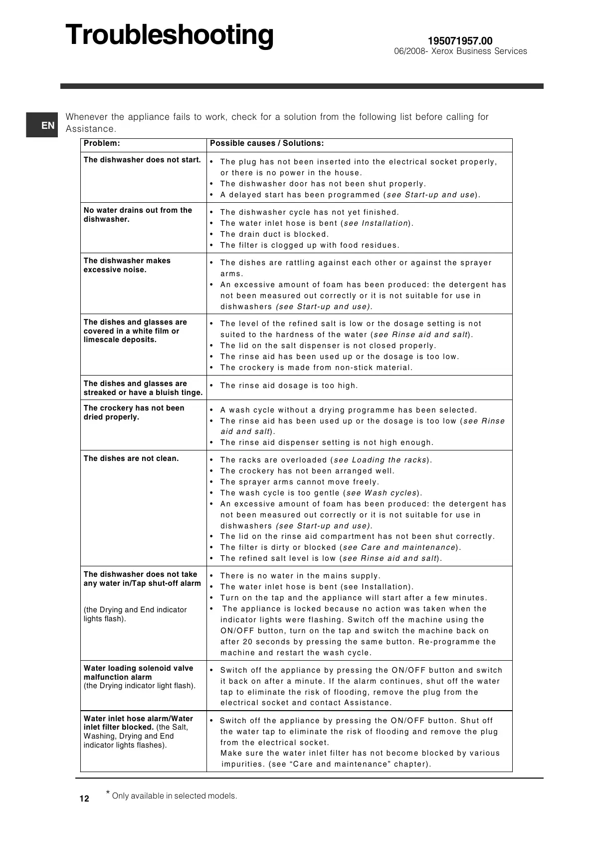 dishwashers (see Start-up and use).