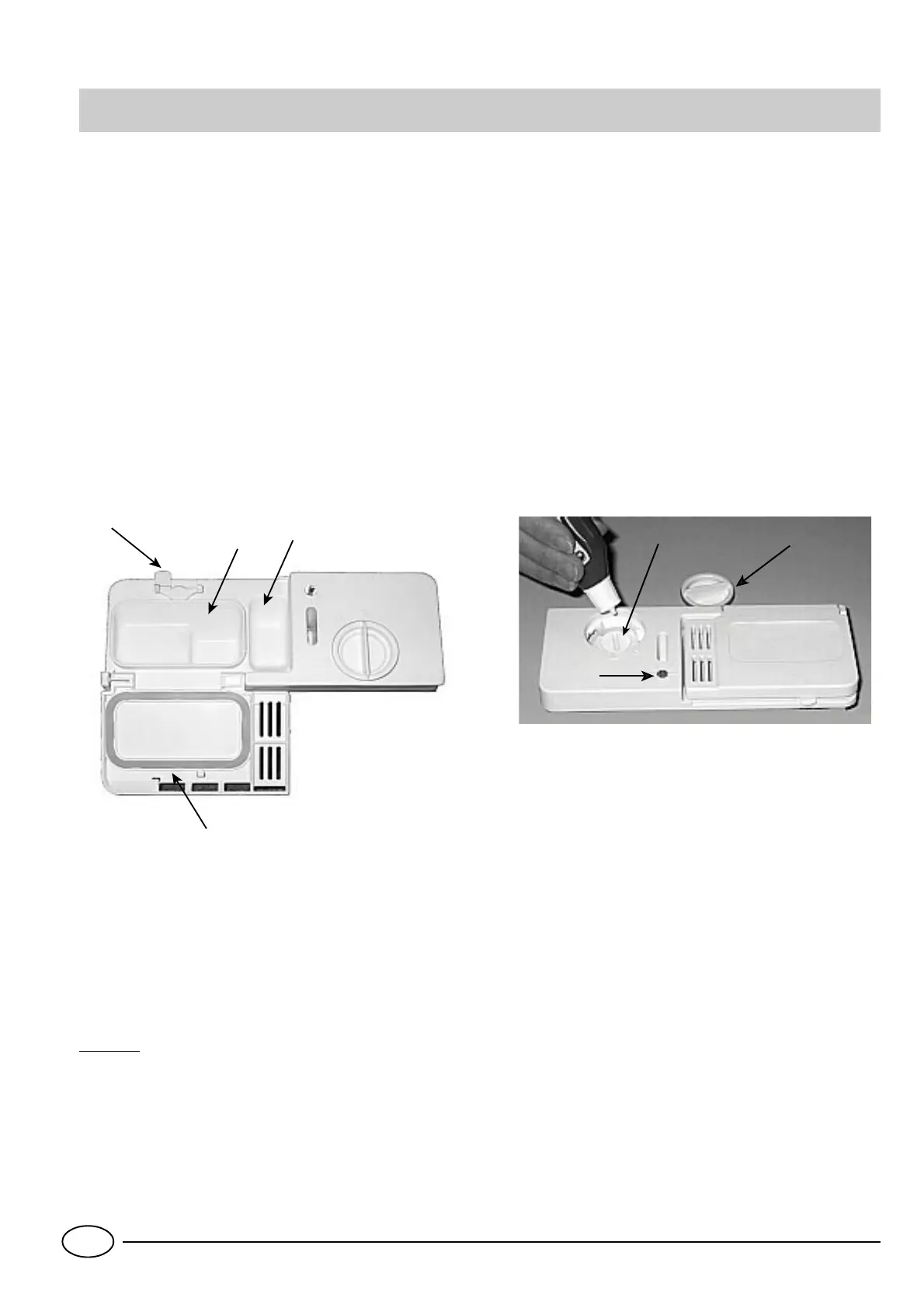 links ab; achten Sie bei Einfüllen darauf, daß kein Klarspüler