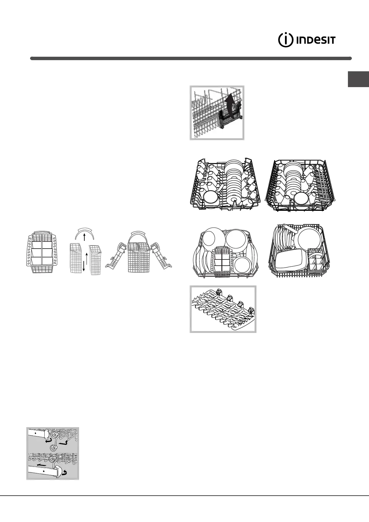 • Dienschalen en deksels: aan de zijkanten van het rek.