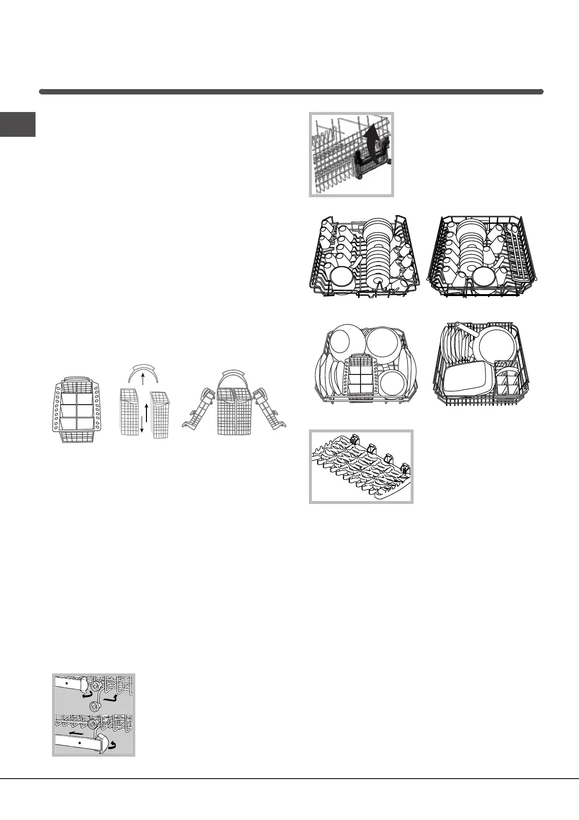 Para lavar las manijas de los cestos inferior y superior: